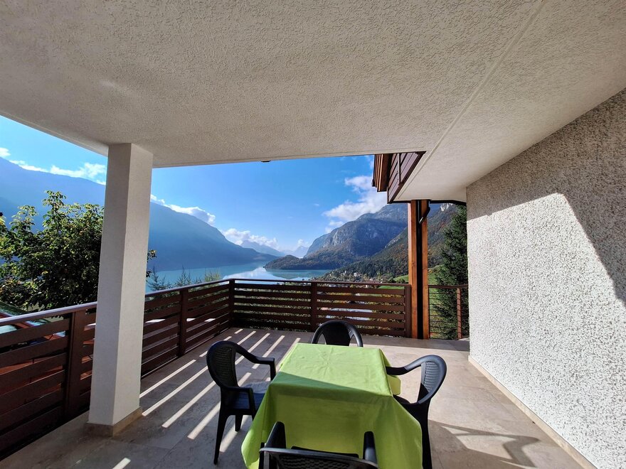 Apartment for 2 to 6 people in a very panoramic view of the lake and the Brenta, 150 m from the ski lifts of Pradel and a 5-minute drive from the slopes of the Dolomites.