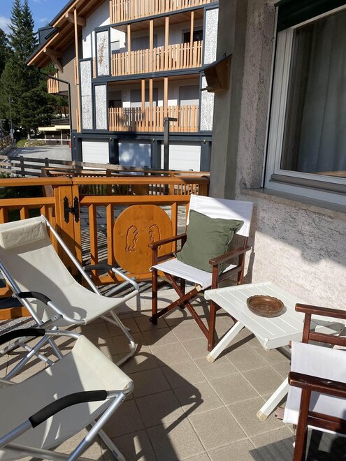 Appartamento al primo piano, composto da soggiorno con divano letto e angolo cottura, 1 camera da letto matrimoniale, 1 bagno, balcone e terrazza; locale per deposito attrezzatura; animali domestici di piccola taglia ammessi. E' disponibile una lavatrice, un'asciugatrice, una lavastoviglie e forno. Conoscenza lingua inglese.