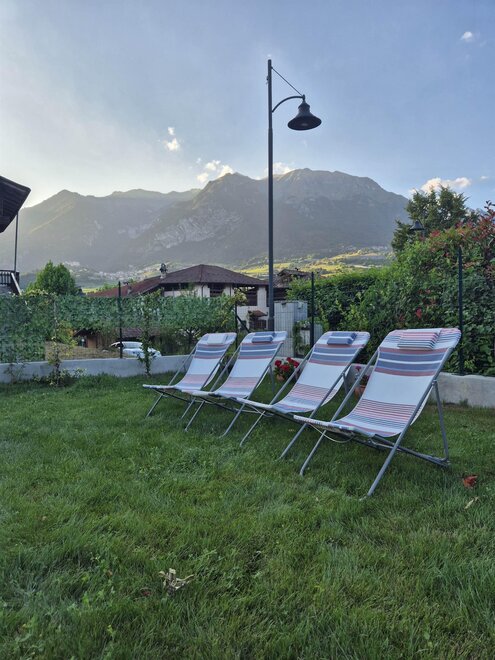 All’esterno ti accoglie un giardino privato: sedute all’aperto, ombrellone e angoli verdi dove fare colazione al sole o rientrare dopo le escursioni, con vista sul paese. È presente anche lo spazio barbecue.