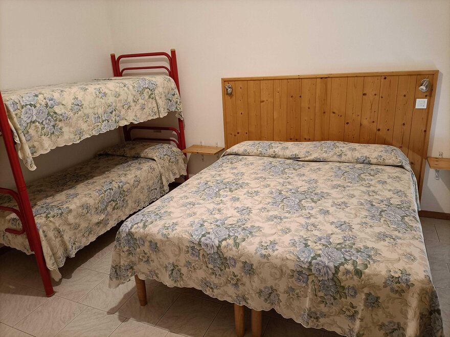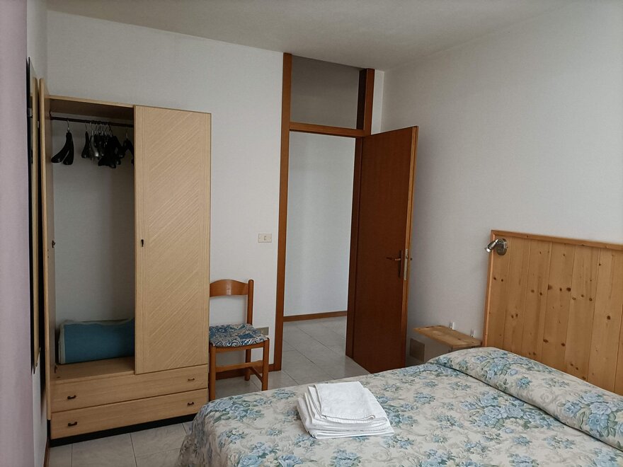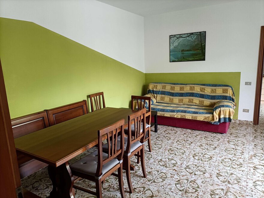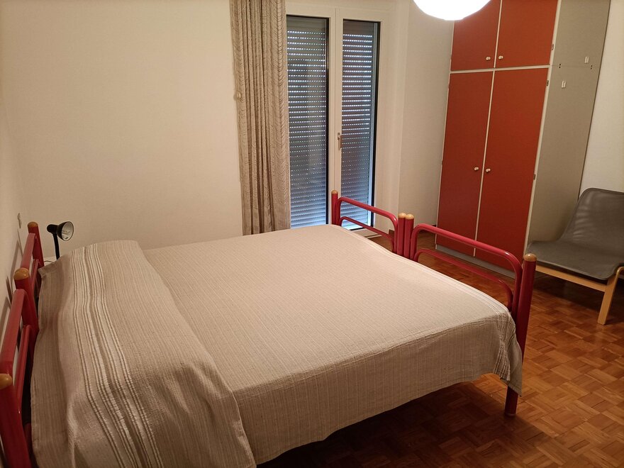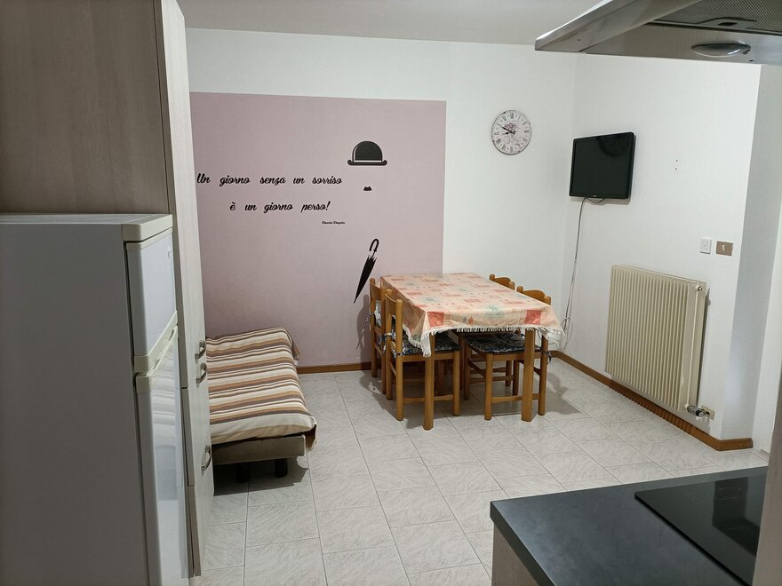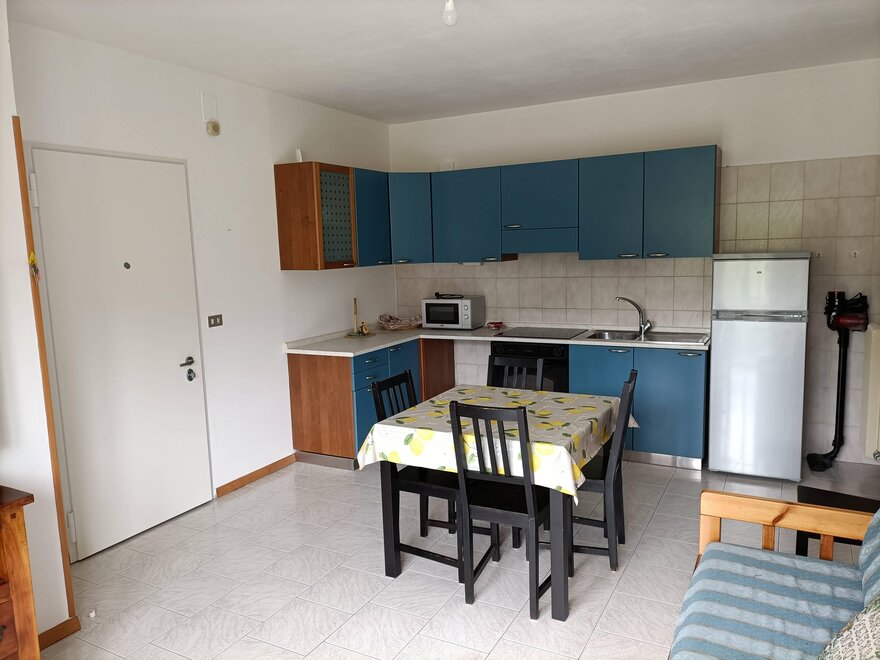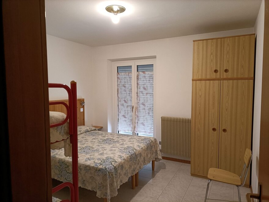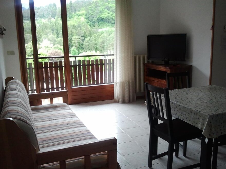 Escluse spese per consumo di acqua calda (contatore) - fornitura biancheria a richiesta.Soleggiato e tranquillo appartamento rivolto verso il bosco, ideale per famiglie: cucina equipaggiata di tutto il necessario, accogliente camera da letto matrimoniale, cameretta con due letti singoli (possibile letto a castello e divano letto in soggiorno), tv, servizi con doccia, lavatrice, balcone, wi-fi