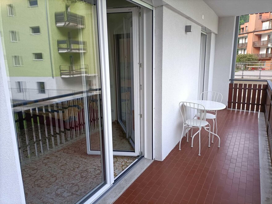 Soleggiato e tranquillo appartamento rivolto verso il parco termale, ideale per coppie o famiglie: cucina equipaggiata di tutto il necessario, accogliente camera da letto con matrimoniale e letto singolo (possibile letto a castello e divano letto in soggiorno), servizi con vasca da bagno/doccia, lavatrice e finestra, tv, balcone, wi-fi.