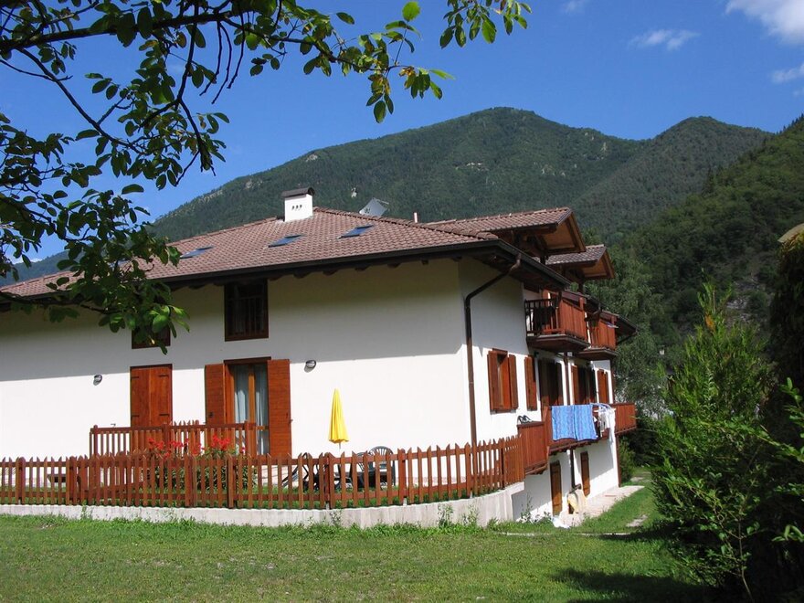 Accogliente casa plurifamigliare. Ai margini dell'abitato in posizione tranquilla presso il parco giochi e la pista ciclo-pedonale che collega Tiarno al lago di Ledro e a quello d'Ampola (Riserva Naturalistica). Ideale punto di partenza per andare alla scoperta della Biosfera Unesco Alpi Ledrensi. L'appartamento è alloggio turistico registrato con codice CIPAT 022229-AT-067007, dispone di due camere da letto separate, una con due letti singoli e balcone, una con letto matrimoniale. Bagno con box doccia e lavatrice, zona giorno con parete cucina completamente attrezzata, divano letto largo 140 cm, Tv sat e balcone. Giardino comunE con barbecue, parcheggio privato chiuso. Piano terra/rialzato.