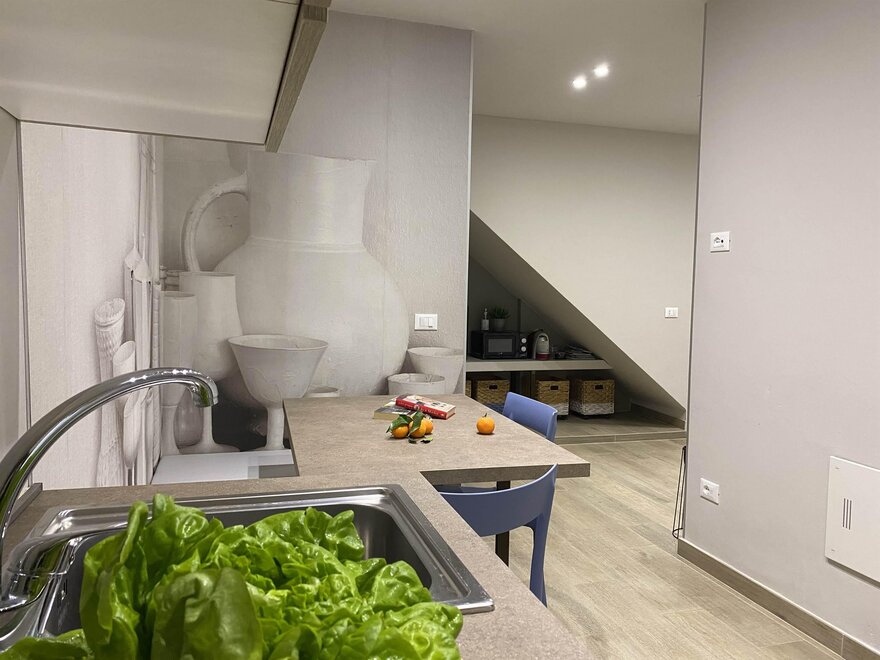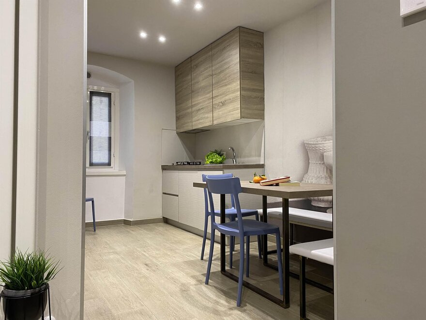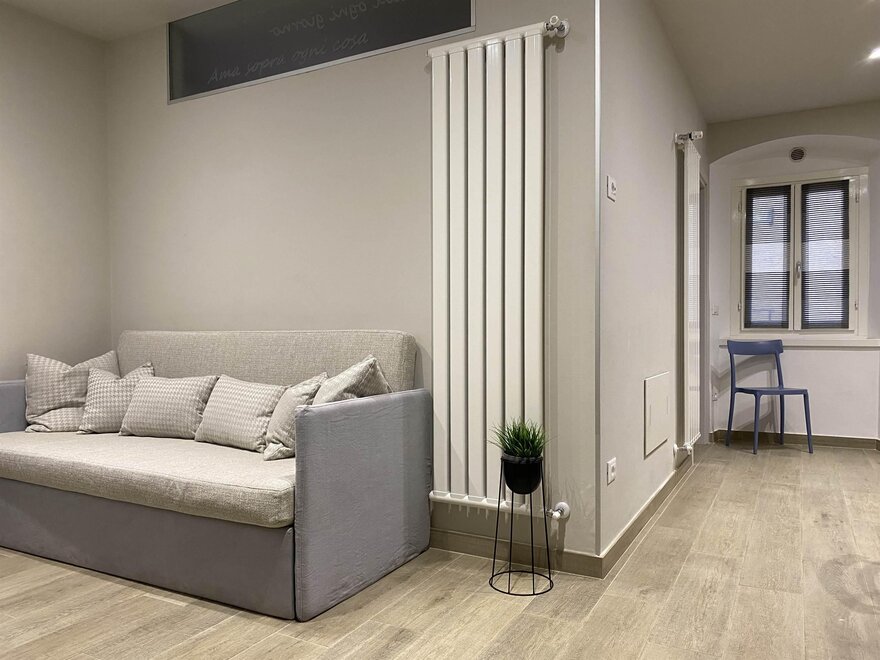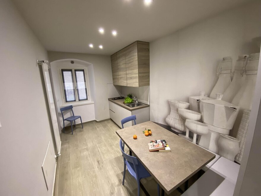 Alloggio a piano rialzato inserito in un contesto di borgo storico, con affaccio su piazzetta e vialetto laterale. Spazi studiati per mettere a disposizione ogni confort con grande attenzione alla comodità ed alla funzionalità di ogni dettaglio, in grado di rendere ogni giornata piacevolmente spensierata e facilitare i mestieri domestici.