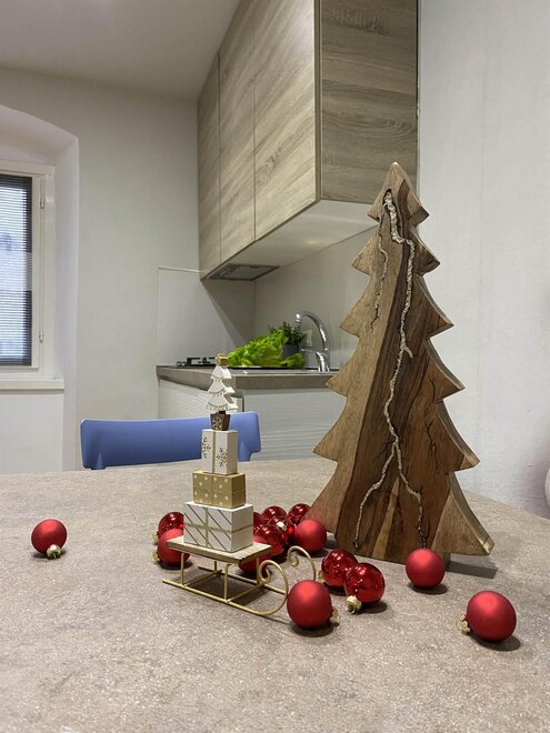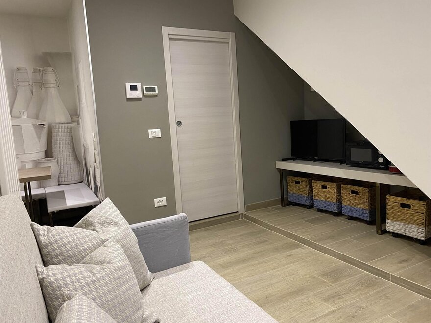Alloggio a piano rialzato inserito in un contesto di borgo storico. Spazi studiati per mettere a disposizione ogni confort con grande attenzione alla funzionalità di ogni dettaglio. Zona divano con TV schermo piatto e macchina del caffè a cialde, divano letto con possibilità di utilizzare due letti singoli o affiancarli a matrimoniale. Cucina e zona pranzo confortevoli ed accattivanti nelle finiture, con frigorifero, fuochi e cappa, completa di stoviglie e tovagliame. Camera da letto matrimoniale con cassone contenitivo, ampio armadio a tutta altezza e cassettiera settimanale. Bagno con lavello, vaso ed ampia doccia. Le finiture di ogni locale sono curate nel minimo dettaglio, prediligendo materiali e tinte naturali, ponendo grande attenzione alla praticità di utilizzo e di pulizia, per permettervi di godere al massimo del vostro tempo libero perché il piccolo, se ben studiato, è sinonimo di praticità e funzionalità. A disposizione lavanderia a piano terra, con lavatrice e stenditoio
