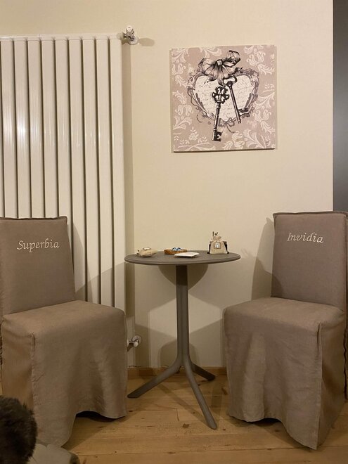 La stanza, di ampie superfici, metterà a vostra disposizione tutti i confort con soffici cuscini, piumino d'oca, tendaggi voluttuosi, mobili antichi e moderne composizioni naturali.