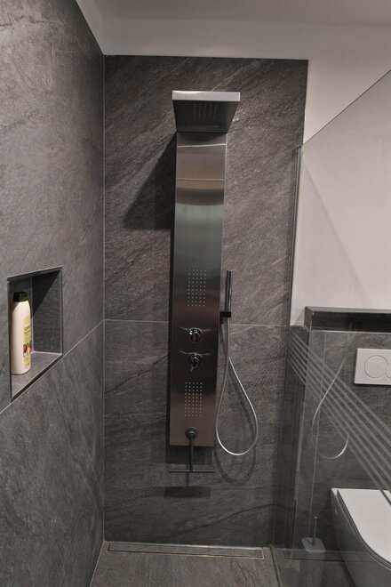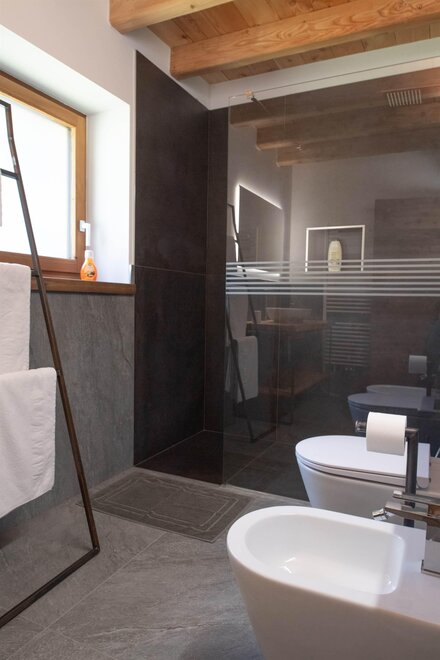 In bagno, la doccia con soffione a cascata e idromassaggio verticale garantisce un’esperienza di benessere completa. Sono inoltre presenti teli doccia, viso e bidet. Completa la dotazione l’asciugacapelli e un set di saponi ecologici.