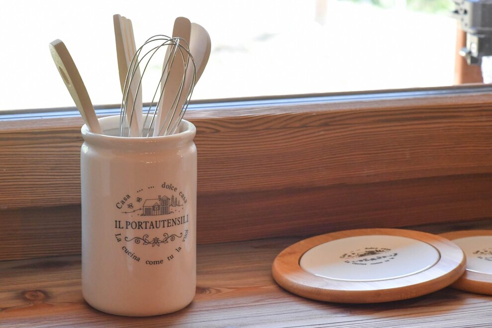 La cucina completamente attrezzata è rifornita con posate, stoviglie, lavastoviglie, forno, piano cottura ad induzione, frigorifero e freezer. Non può ovviamente mancare la macchina del caffè.