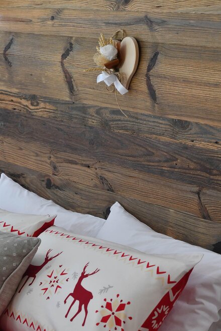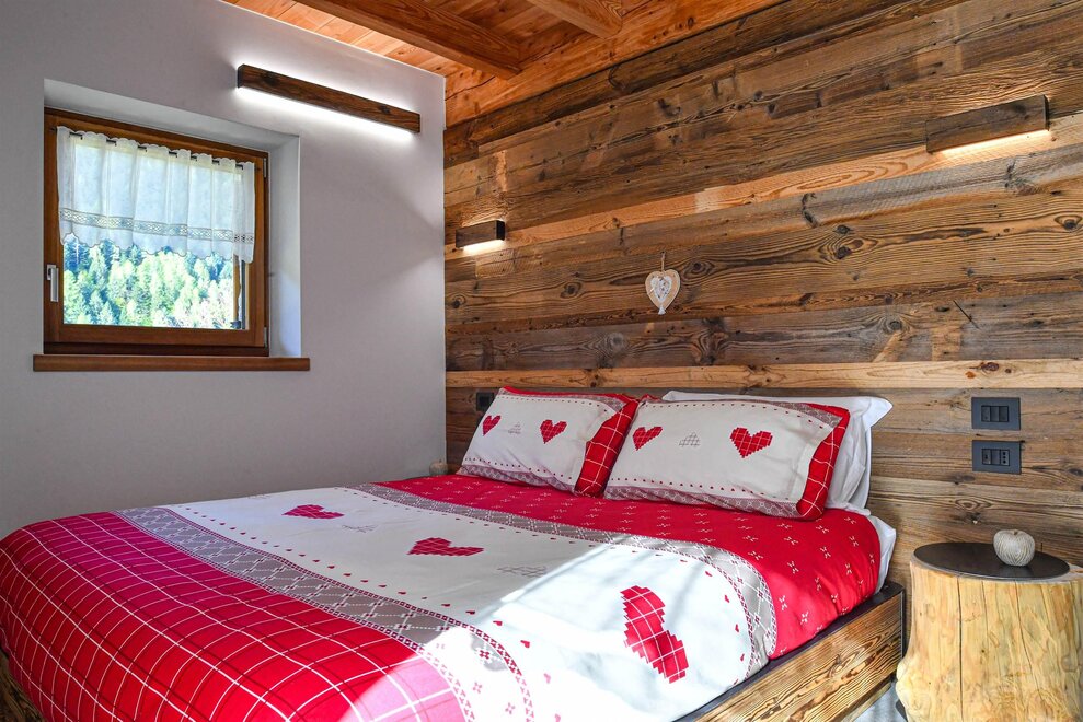 Chalet Cirmolo, una baita per coppie di innamorati o piccole famiglie che vanta una superficie di 55 m² e che permette di vivere la montagna anche all’interno grazie al camino e al profumo del legno, sinonimo di tradizione. Lo chalet offre due camere da letto matrimoniali per un totale di 4 ospiti: una stanza al pian terreno e un’altra sul soppalco di 20 m², dove un’illuminazione a cromoterapia e una poltrona in legno di cirmolo promette relax e quiete assoluta. Questo rende lo Chalet Cirmolo perfetto per una fuga romantica.