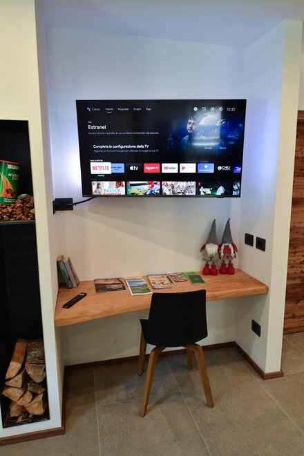 Lo chalet, oltre al camino, presenta internet Wi-Fi e Smart TV con canali satellitari sia nella zona giorno che in camera da letto. Quale miglior serata sotto le coperte davanti al camino guardando il tuo film preferito? Grazie alla connessione internet (sia cablata che Wi-Fi) e al nostro spazio dedicato allo smart-working, è possibile lavorare immersi nella tranquillità delle Dolomiti.
