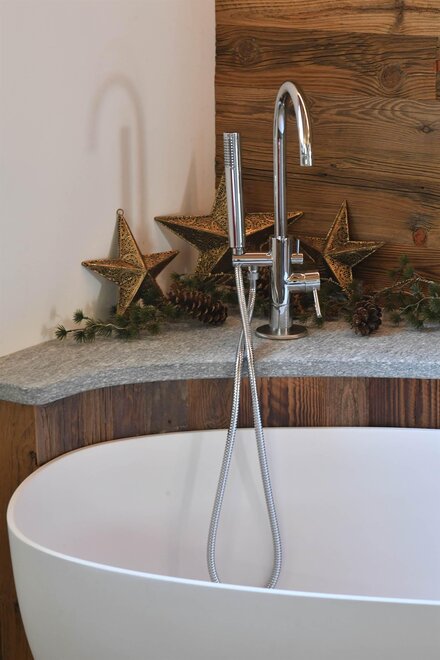 Chalet Grifone, una baita adatta a coppie e famiglie che vanta una superficie di 90 m² e che promette comfort e accoglienza, ma anche relax privato grazie alla vasca da bagno in camera. La presenza del legno vecchio, ricco di storia, conferisce un legame tangibile con la tradizione locale. Lo chalet offre due camere da letto per un totale di 5 ospiti: una stanza con un letto matrimoniale e vasca relax mentre un’altra, sul soppalco di 25 m², con un letto matrimoniale e un singolo. Qui è presente un’illuminazione a cromoterapia e una poltrona in legno di cirmolo per godere della quiete assoluta.