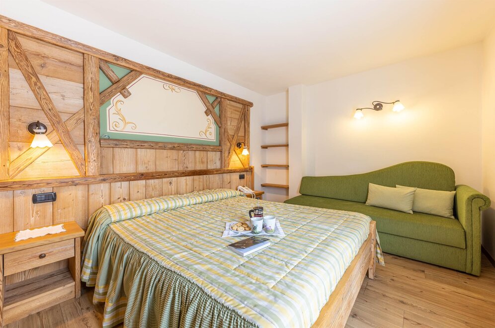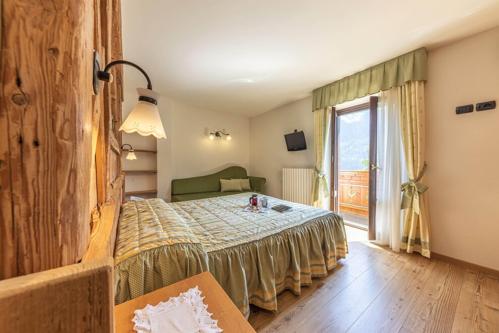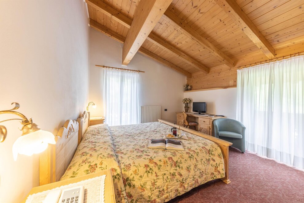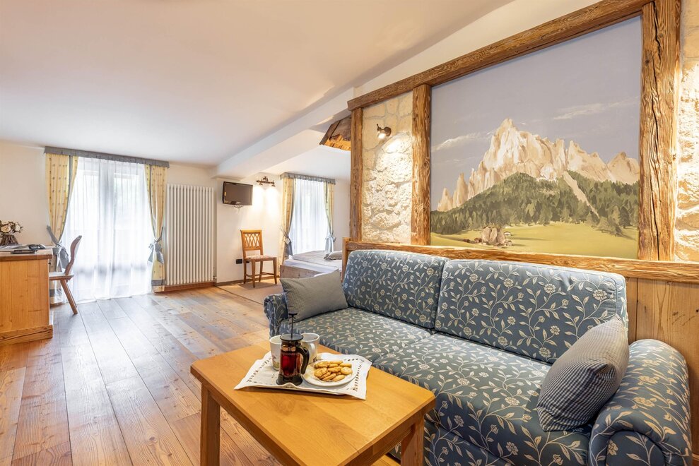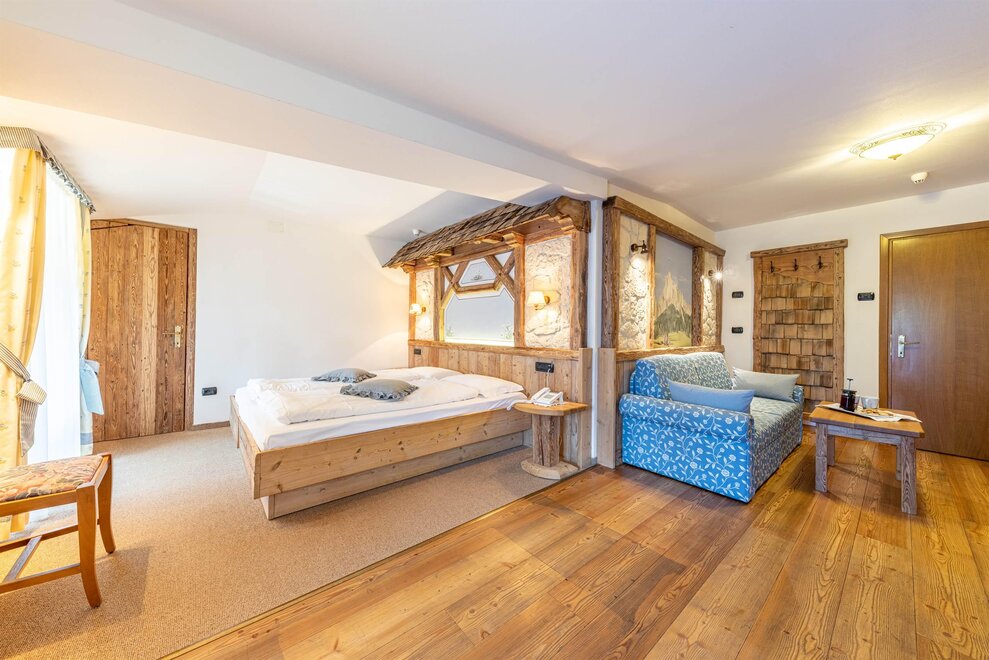 Ampie e luminose stanze con soffitto in legno e palchè o morbida moquette. Arredate in legno chiaro e dotata di un comodo divano che all’occorrenza diventa un letto. Dotate di servizio privato con box doccia e asciugacapelli, telefono diretto, tv LCD, cassaforte, piccolo frigo a disposizione, collegamento Wifi e balcone privato. Possibilità di avere stanze comunicanti.