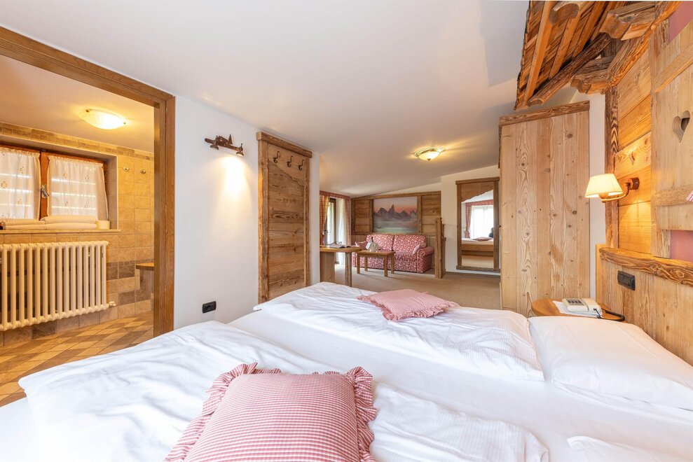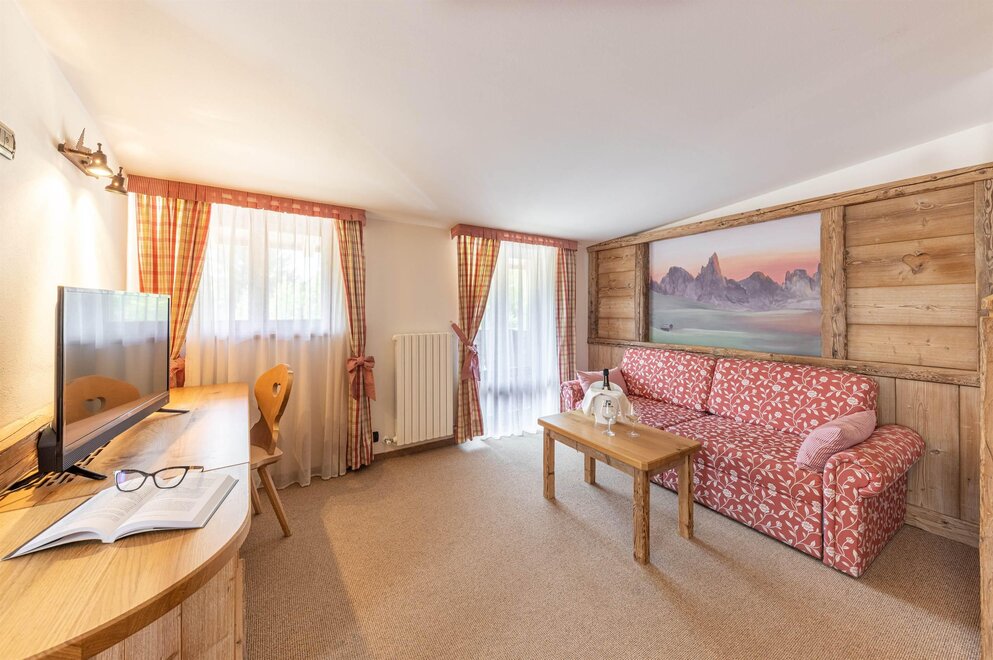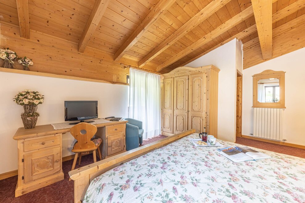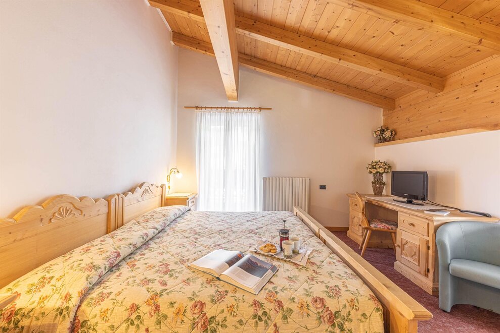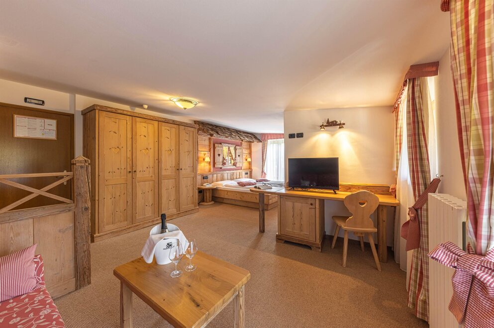 Ampie e luminose stanze con soffitto in legno e palchè o morbida moquette. Arredate in legno chiaro e dotata di un comodo divano che all’occorrenza diventa un letto. Dotate di servizio privato con box doccia e asciugacapelli, telefono diretto, tv LCD, cassaforte, piccolo frigo a disposizione, collegamento Wifi e balcone privato. Possibilità di avere stanze comunicanti.