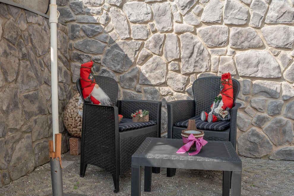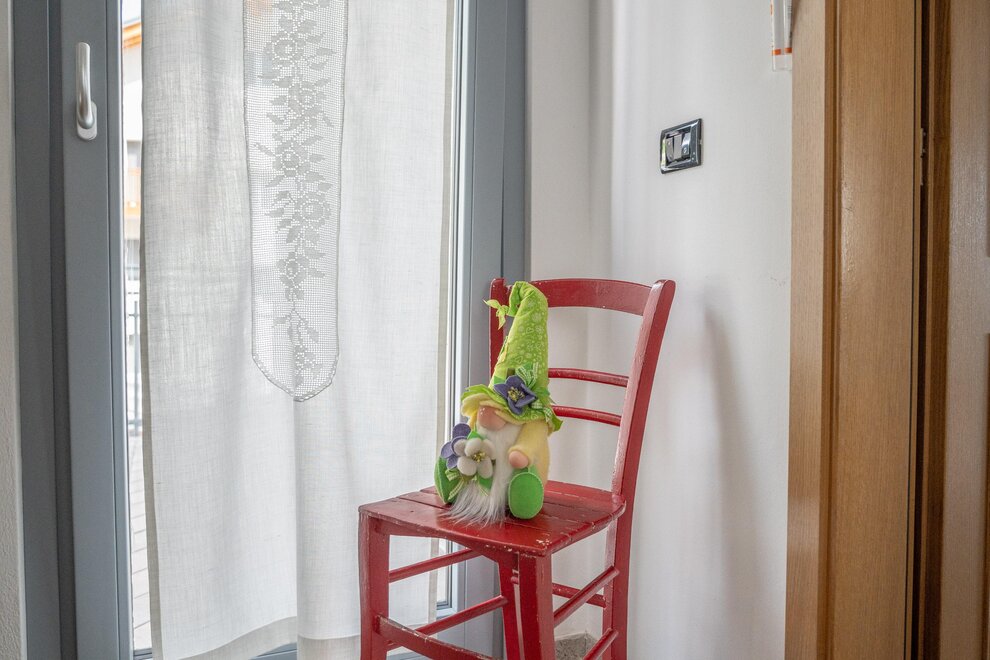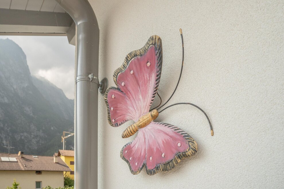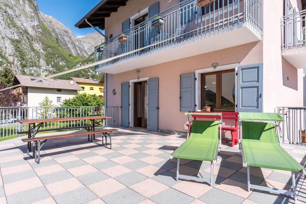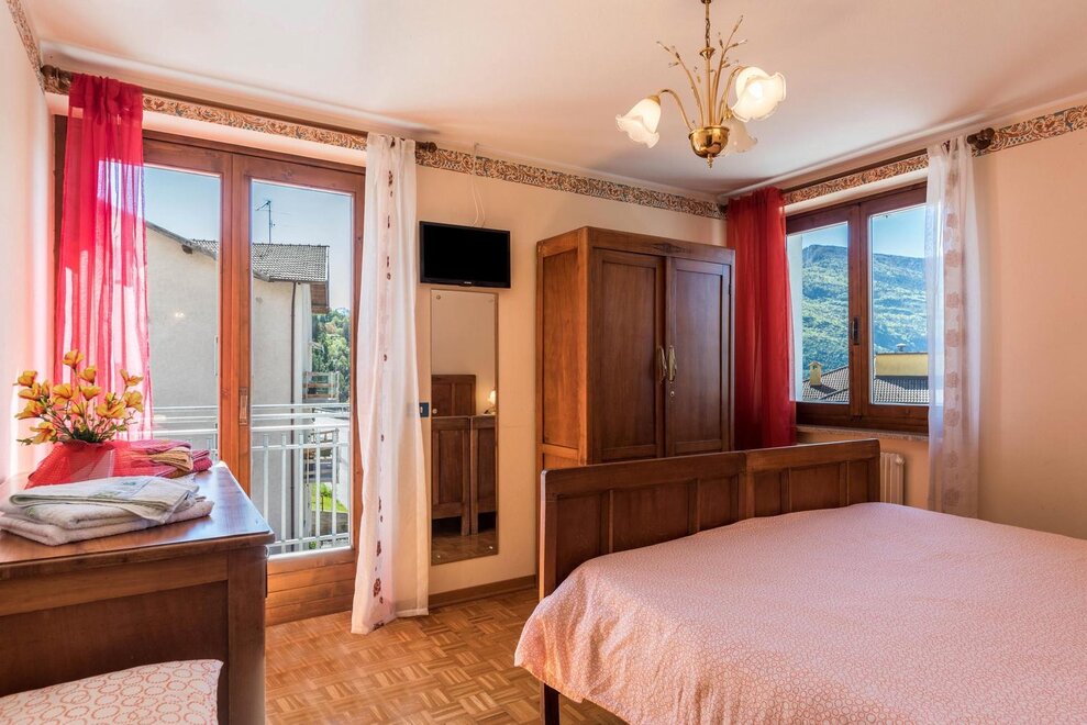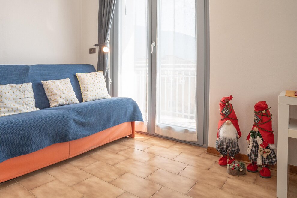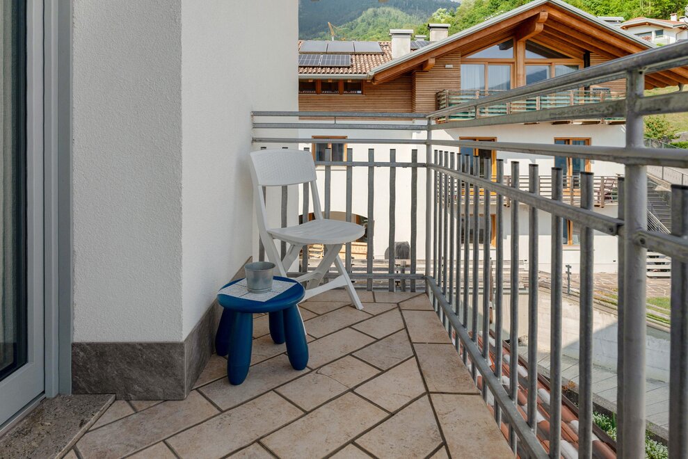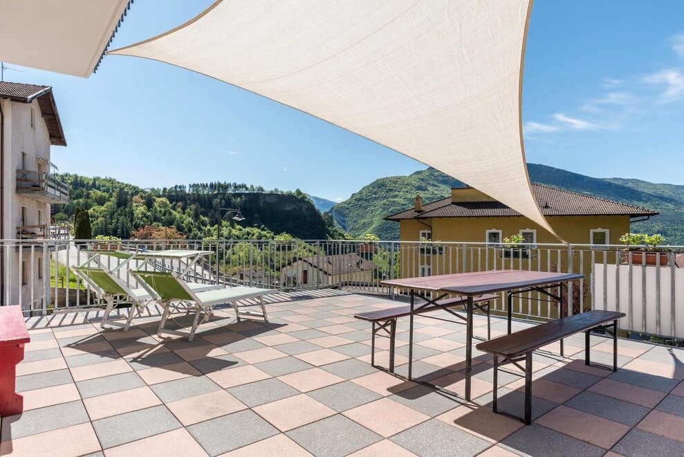 Dotato di una camera matrimoniale, salotto con divano-letto matrimoniale e stufa Ole in ceramica dipinta (tipica in Trentino), cucina ampia e luminosa, bagno privato e finestrato, terrazza attrezzata di 40 mq (solarium) con vista spettacolare e rilassante sulla vallata.