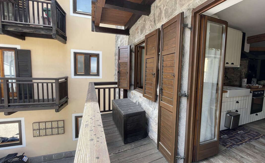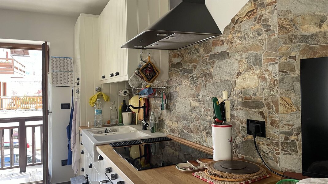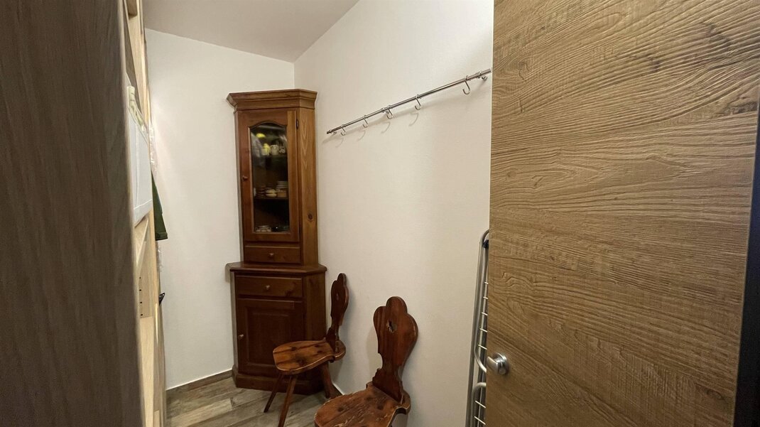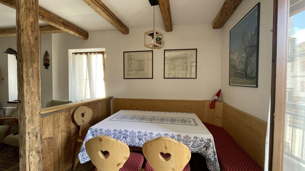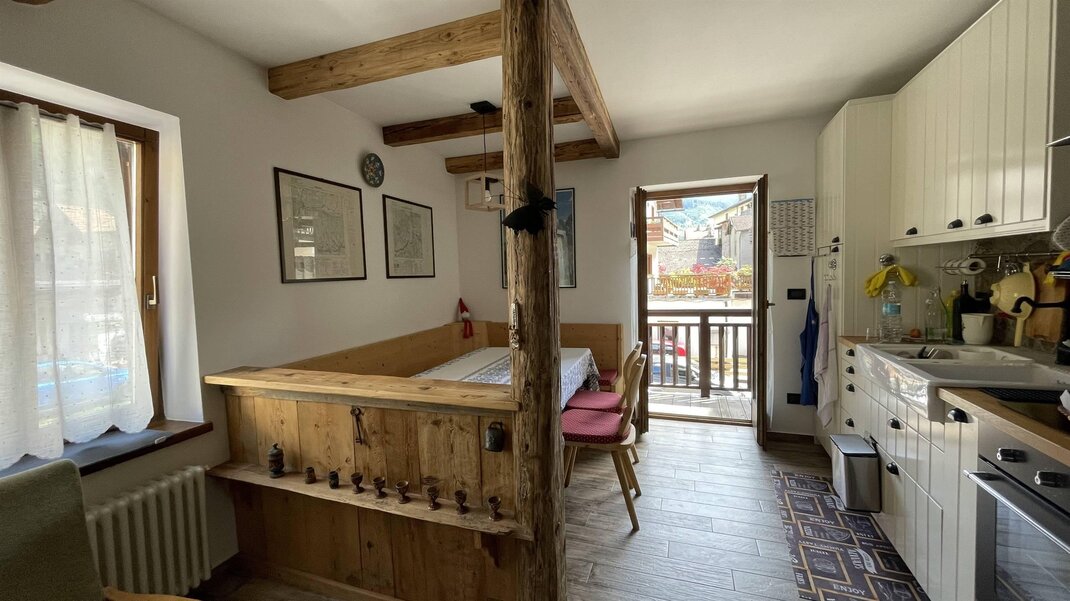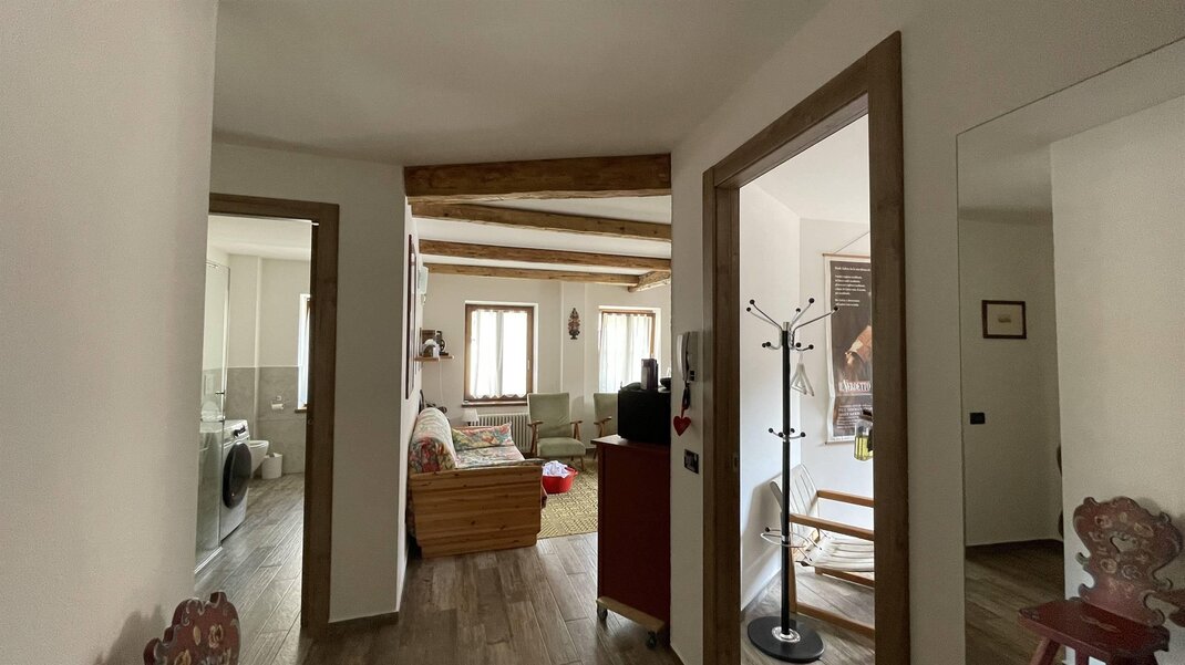 L’appartamento è composto da una zona giorno con cucina e soggiorno con divano letto matrimoniale e da zona notte con due camere da letto: una matrimoniale e una doppia, che può essere trasformata in matrimoniale su richiesta. È dotato di bagno con doccia e di balcone che si affaccia sulla Catena del Lagorai. Sono disponibili lavasciuga, televisore, forno tradizionale e a microonde, ferro e asse da stiro, phon, scopa elettrica e connessione Wi-Fi.