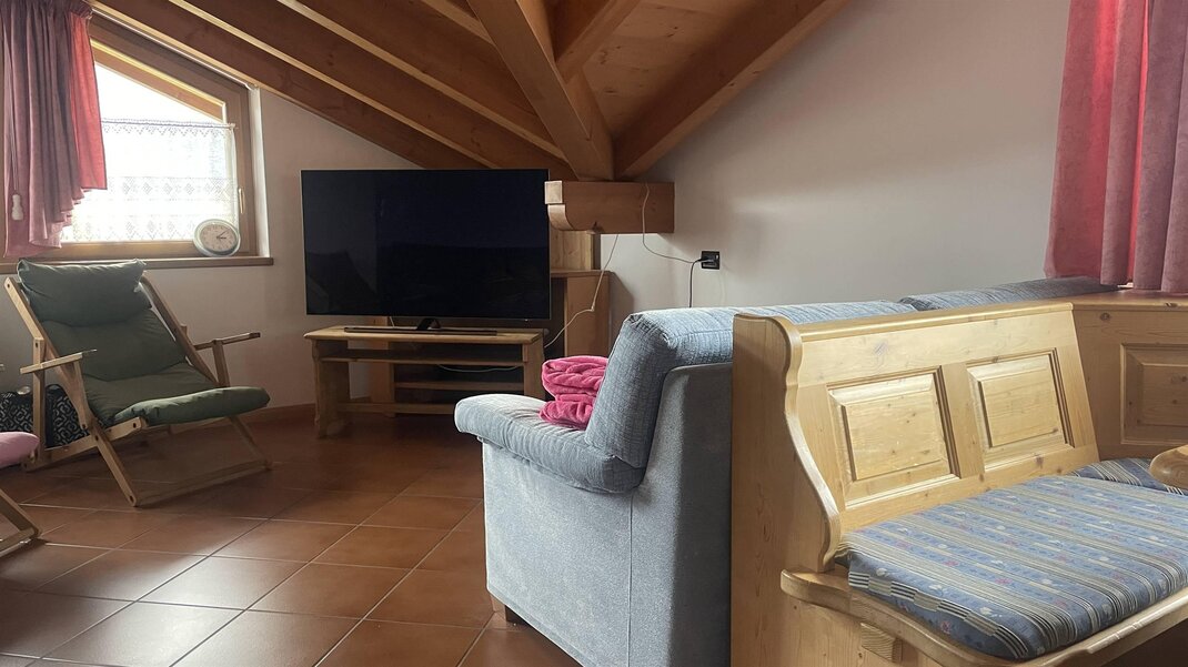 Situato in una zona tranquilla, a circa 10–15 minuti dal centro a piedi di Ziano di Fiemme, questo appartamento mansardato dal caldo soffitto in legno unisce comfort moderni e atmosfera di montagna. Si trova al secondo piano di una piccola palazzina e accoglie gli ospiti con una luminosa zona soggiorno-cucina, ideale per rilassarsi dopo una giornata trascorsa all’aria aperta.