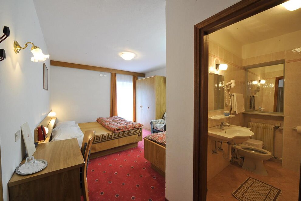 Stanza arredata con letto matrimoniale o letti separata di circa 18 mq e servizi privati. Balcone con vista panoramica sulle montagne circostanti. Non mancano inoltre televisore LCD, asciugacapelli, connessione internet (Wi-Fi, per garantire benessere e relax ai nostri ospiti.