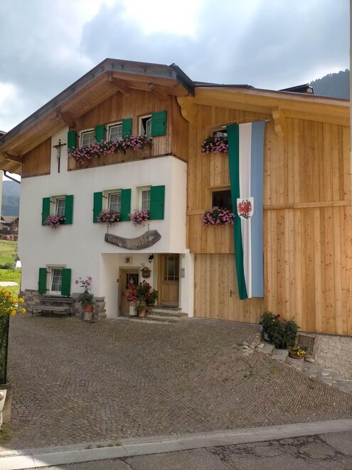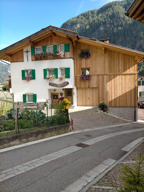 L'appartamento è ubicato al secondo piano di Cèsa Davarda ed è composto da cucina attrezzata, ampio soggiorno con balcone panoramico vista Dolomiti, una camera da letto matrimoniale, una camera con tre letti singoli e due bagni con doccia e vasca idromassaggio. La cucina è attrezzata di tutto l necessario e include lavastoviglie e forno microonde. L'appartamento è privo di moquette.