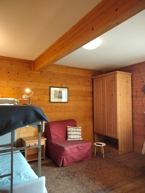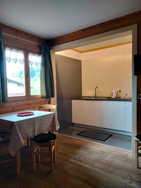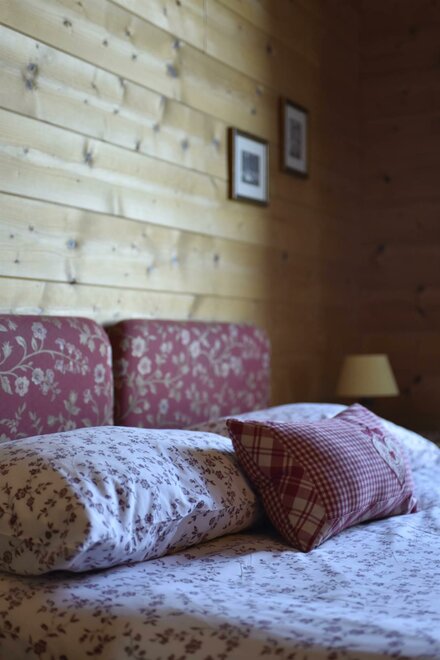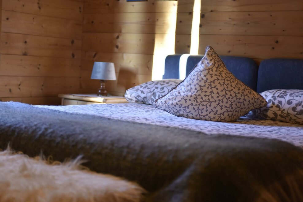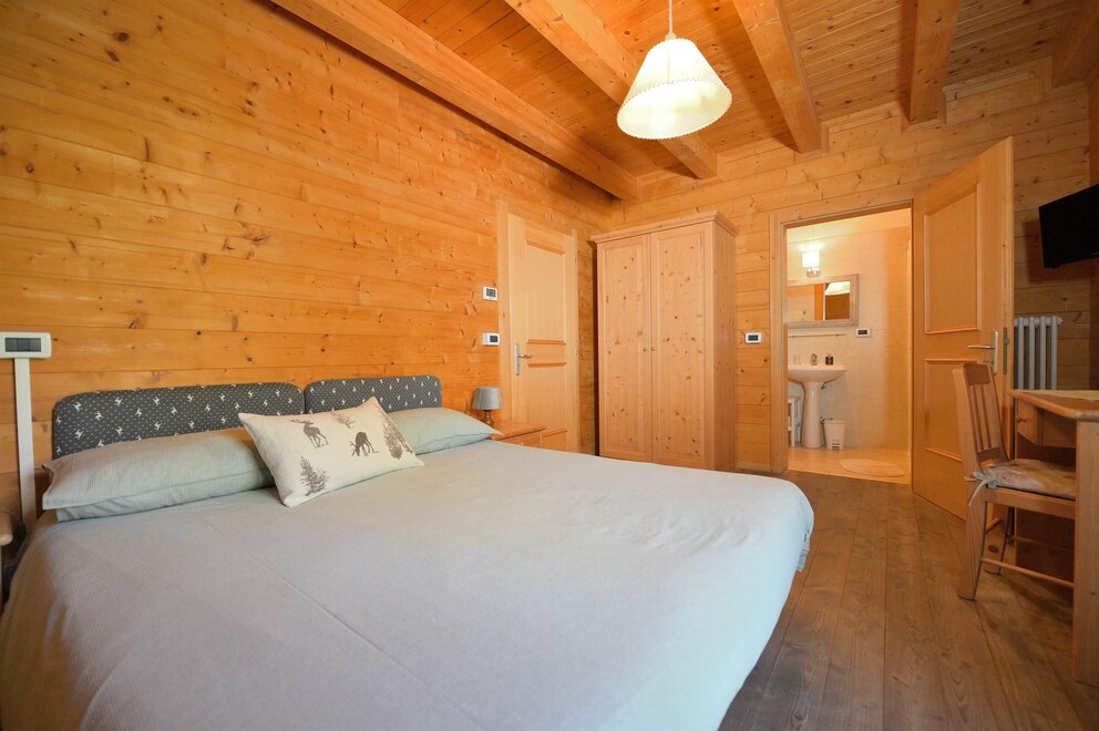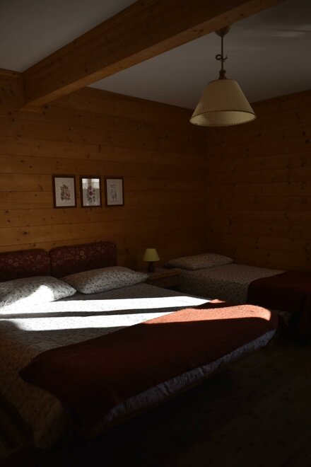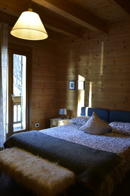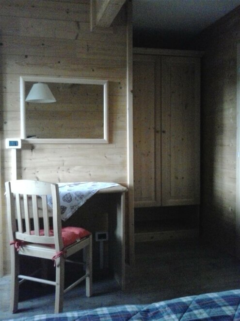 Camera in legno con letto matrimoniale + letto singolo, riscaldamento autonomo, dotata di armadio, tavolino sedia, e bagno privato con lavabo, doccia, WC. Ampio giardino e posto macchina. Colazione composta in gran parte dai prodotti della malga. E’ possibile aggiungere lettino per bimbi fino ai 3 anni. Possibilità di pranzare/cenare presso il vicino ristorante dell'agritur a prezzi convenzionati.