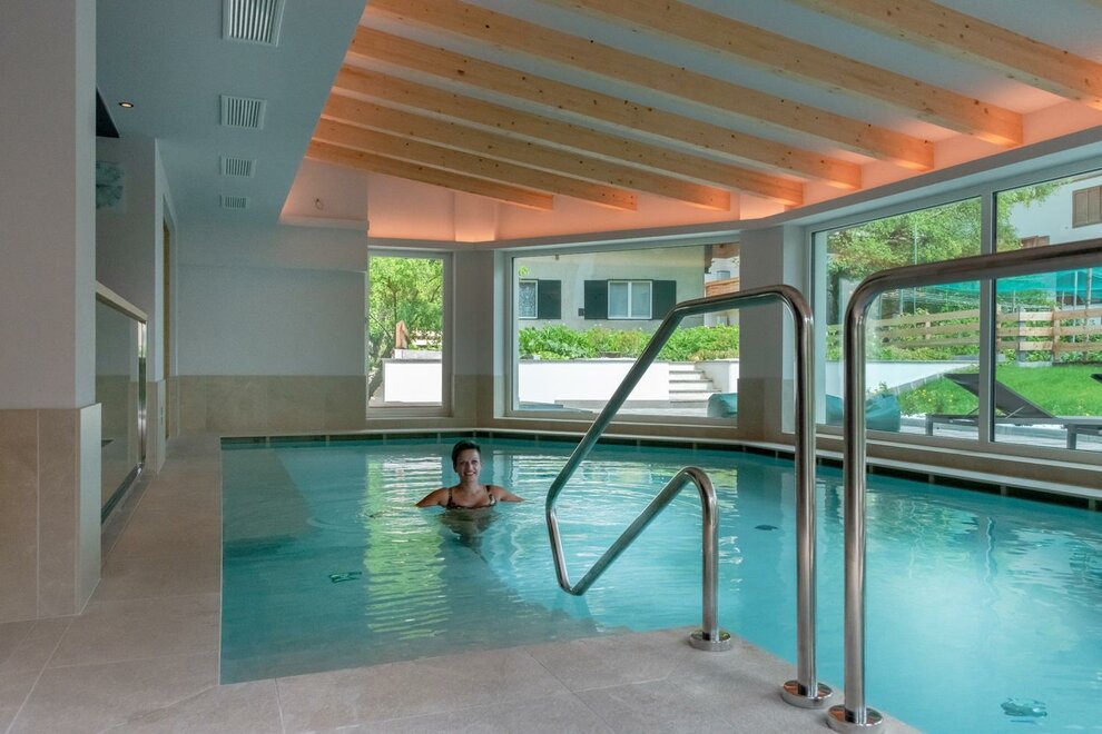 Nuova area wellness (realizzazione autunno 2017) di 220 mq dotata di sauna finlandese, bagno turco, cascate di ghiaccio, docce di reazione, 2 aree relax e piscina coperta con idromassaggio a 32° gradi