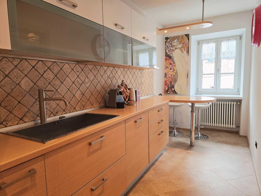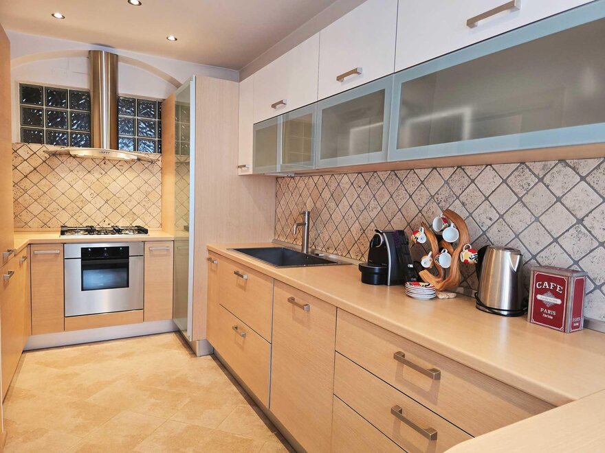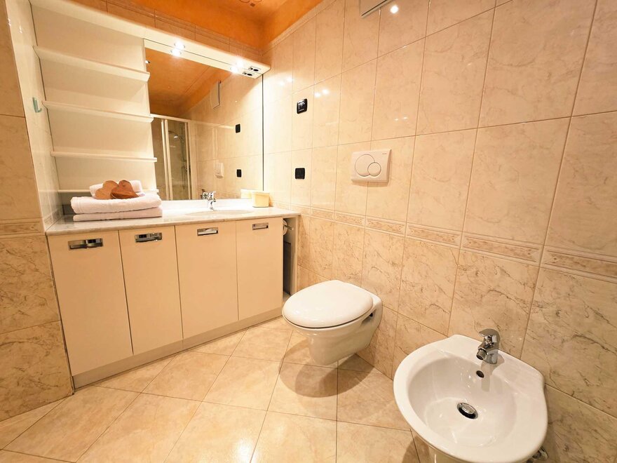 L’appartamento dispone di due camere da letto accoglienti, due bagni funzionali e una cucina completamente attrezzata, perfetta per preparare piatti gustosi dopo una giornata all’aria aperta. Il soggiorno, luminoso e curato nei dettagli, offre uno spazio ideale per rilassarsi in un ambiente caldo e invitante.