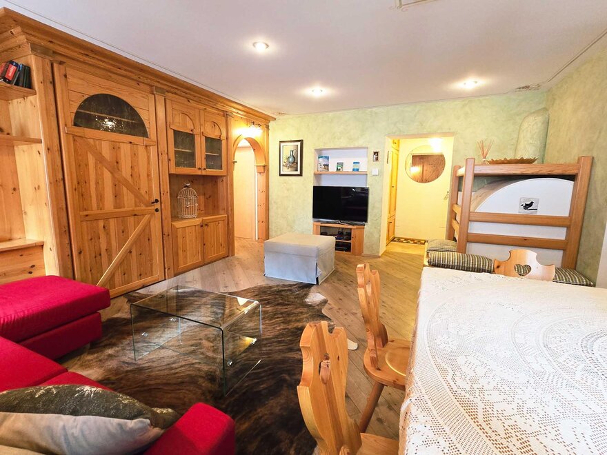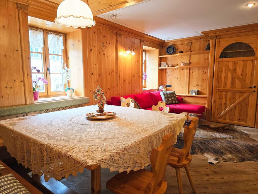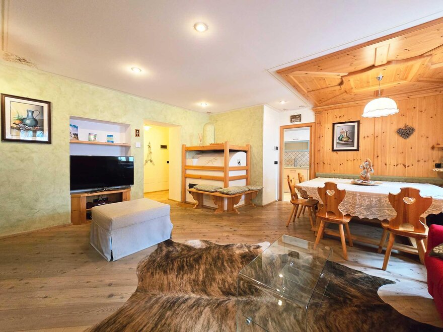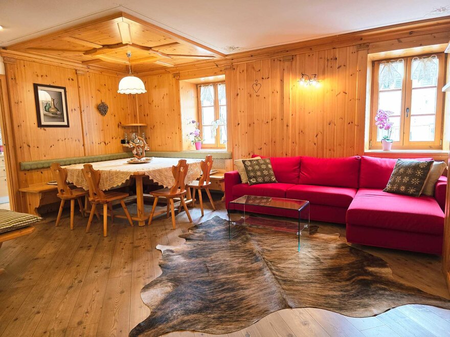 Situato a soli 300 metri dal centro storico di Predazzo, Essenza di Bosco è un elegante appartamento in stile Trentino che unisce comfort moderno e atmosfera alpina. La sua posizione privilegiata al primo piano regala una suggestiva vista sul centro del paese, incorniciata dalle maestose Dolomiti.
