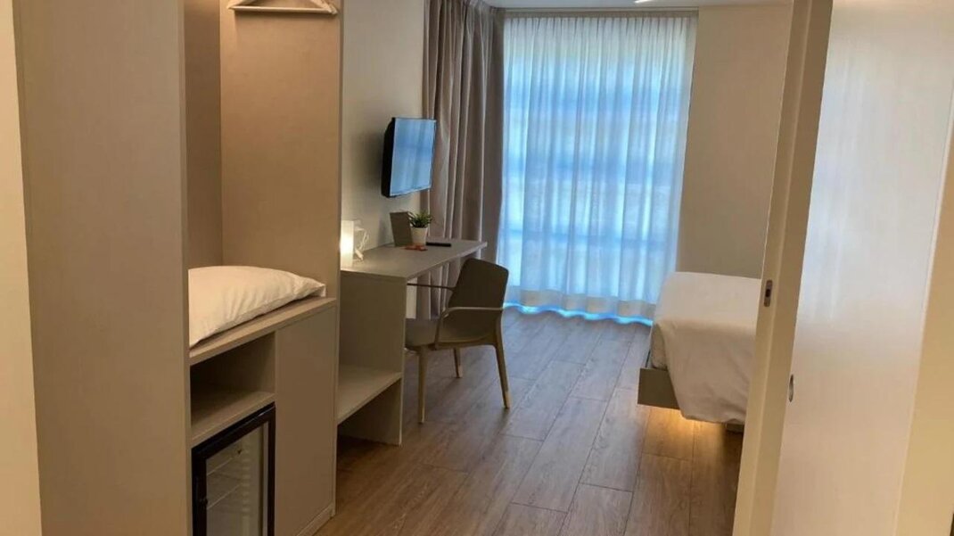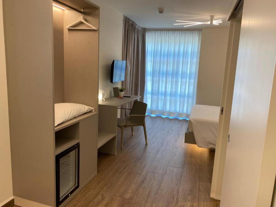 Ampia e spaziosa con letto matrimoniale e il terzo letto separato, che consente maggiore privacy e tranquillità. Camera dotata di aria condizionata, connessione Wi-Fi gratuita, TV a schermo piatto e bagno privato.