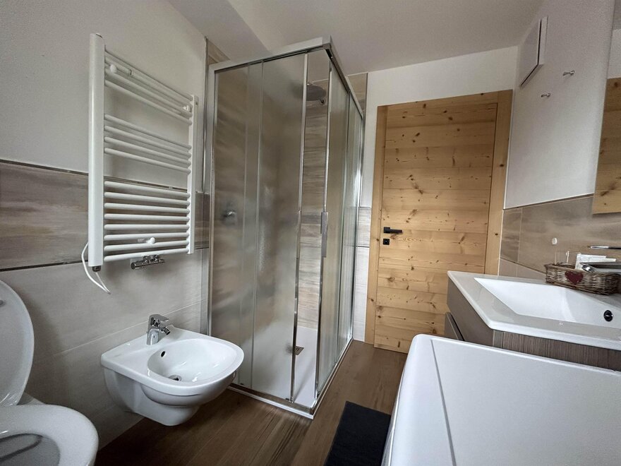 La nostra casa dispone inoltre di parcheggio privato, deposito biciclette e attrezzature, di deposito sci e scarponi. I piccoli animali sono ben accolti. Saremo felici di accogliervi in Val di Fassa per trascorrere le vostre vacanze in totale libertà e relax.