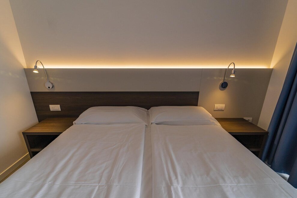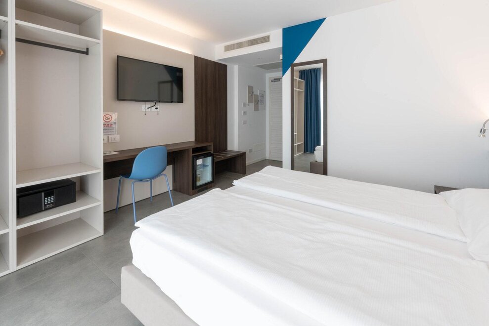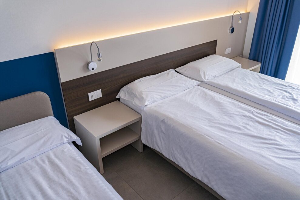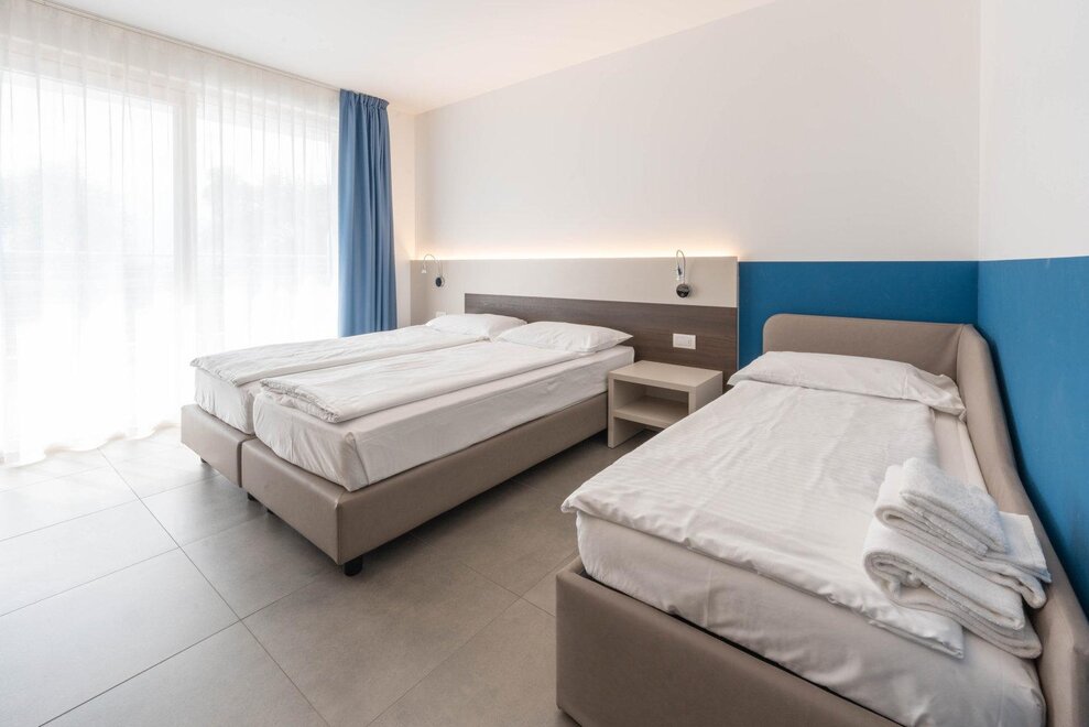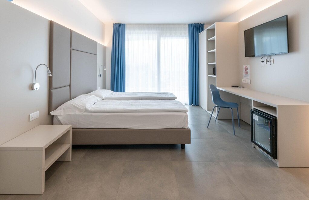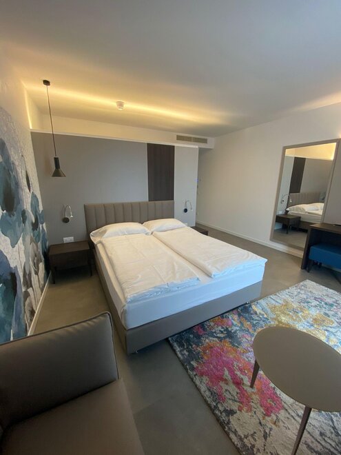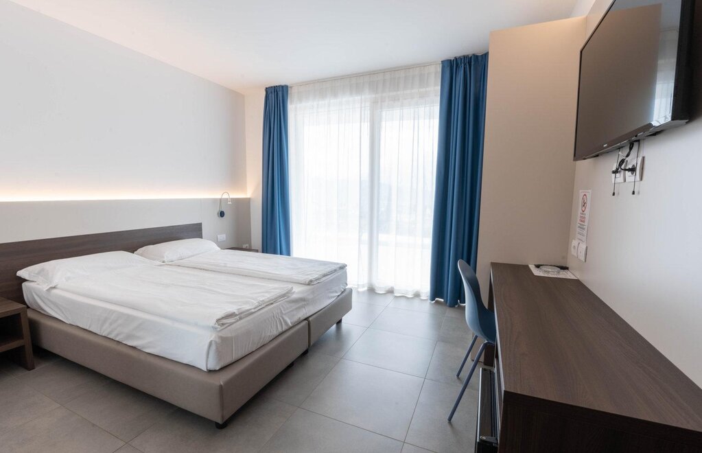 Camera in stile moderno, ideale per le famiglie composte da massimo 3 persone. Questa tipologia di camera dispone di un letto matrimoniale separabile e di un letto singolo e sono dotate di connessione Wi-Fi gratuita, TV satellitare a schermo piatto, minibar, cassaforte, scrivania, riscaldamento, aria condizionata, balcone, bagno privato completo di asciugacapelli e set di cortesia.