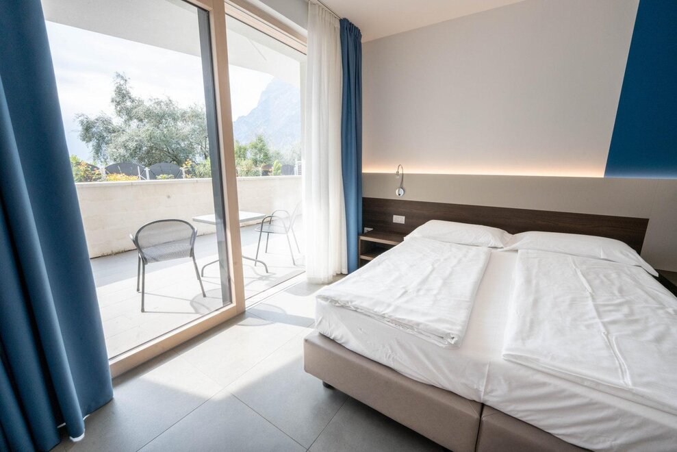 Camera in stile moderno con vista sul Lago di Garda, ideale per le famiglie composte da massimo 3 persone. Questa tipologia di camera dispone di un letto matrimoniale separabile e di un letto singolo e sono dotate di connessione Wi-Fi gratuita, TV satellitare a schermo piatto, minibar, cassaforte, scrivania, riscaldamento, aria condizionata, balcone, bagno privato completo di asciugacapelli e set di cortesia.