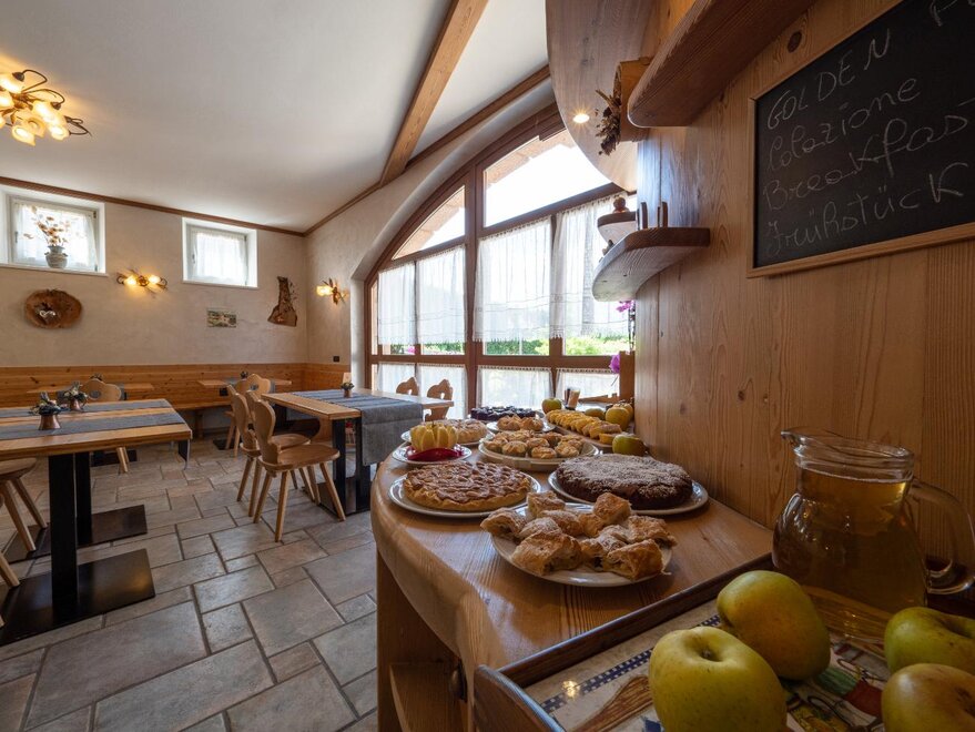 In mezzo ai meleti, ai margini del piccolo e tranquillo paese di Toss di Ton si trova l'Agritur Golden Pause. Immerso nella natura a pochi passi da Castel Thun e dai boschi di faggio con vista sulle Dolomiti del Brenta, un luogo ideale per escursioni, passeggiate oppure per una vacanza all'insegna della tranquillità e del relax. Ideale anche come punto di partenza per visitare tutta la Valle di Non. Da noi potrete gustare le ricche e genuine colazioni a base di dolci, yogurt, pane, marmellate, succo di mela preparati appositamente con cura dalle mani di Carla. Per chi desidera una colazione salata potrà gustare i nostri affettati prodotti da Claudio. Siamo attrezzati per le persone diversamente abili. La chicca del nostro agriturismo il nuovo centro wellness. La GUEST CARD Trentino è gratuita per i nostri ospiti a partire da un soggiorno di due notti.