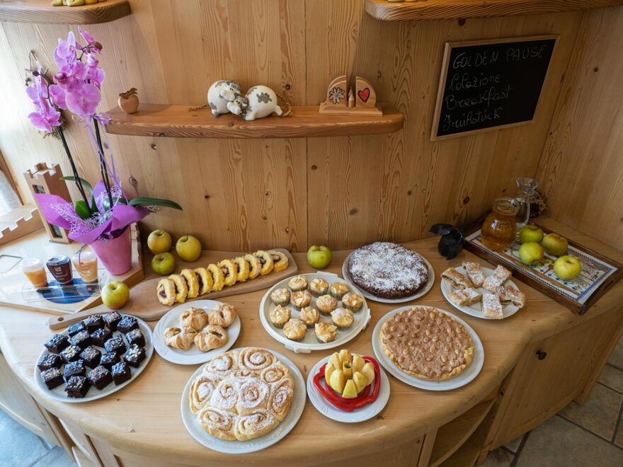 Inoltre, a disposizione degli ospiti, parcheggio privato, sala comune per un thè o un caffè, connessione wi-fi, ed un rilassante giardino, fattoria con tanti animali da conoscere, una soleggiata terrazza con sdraio per trascorrere tranquilli momenti di relax e un nuovissimo parco giochi. Golden Pause è attrezzato per le persone diversamente abili.Una ricca e golosa colazione con prodotti tipici fatti in casa, lo yogurt prodotto da Carla, il succo di mela, pane di segale o multicereale e tante varietà di dolci tutti i giorni diversi. Cambio biancheria, pulizie giornaliere, acqua calda, riscaldamento, corrente elettrica. La nostra chicca è il nuovissimo centro wellness da prenotare in anticipo anche per la singola coppia per un massimo di due coppie alla volta per due ore di tempo.