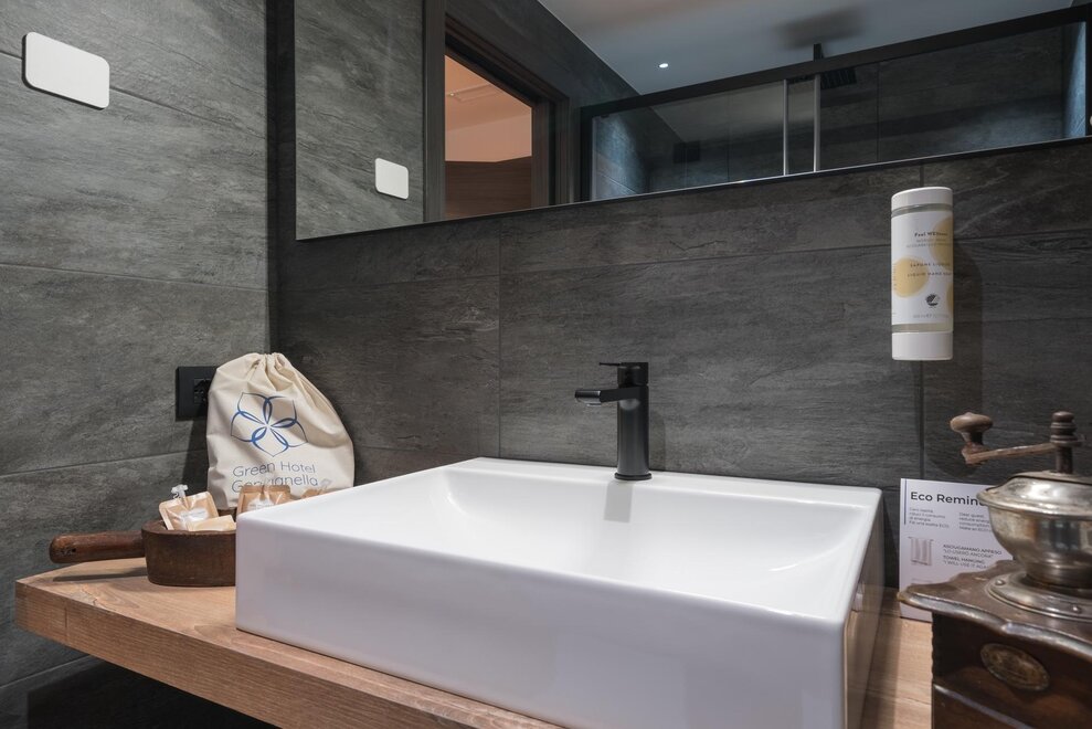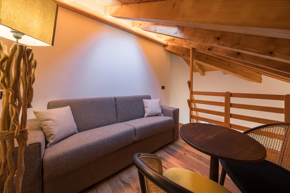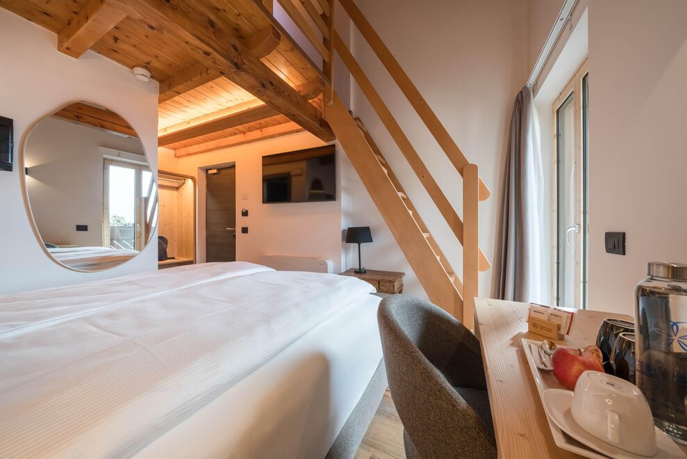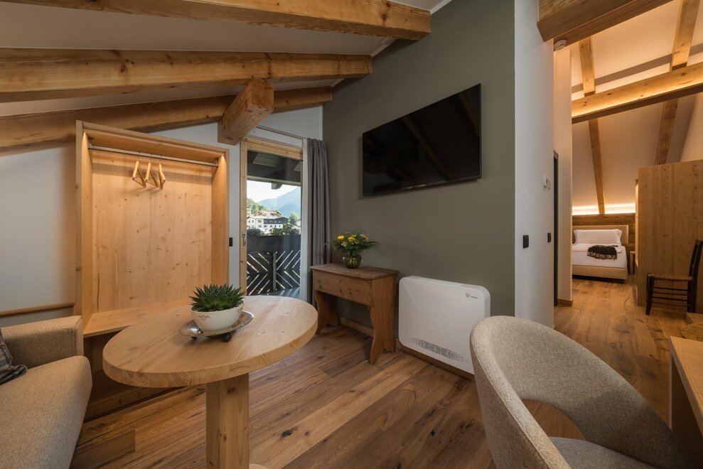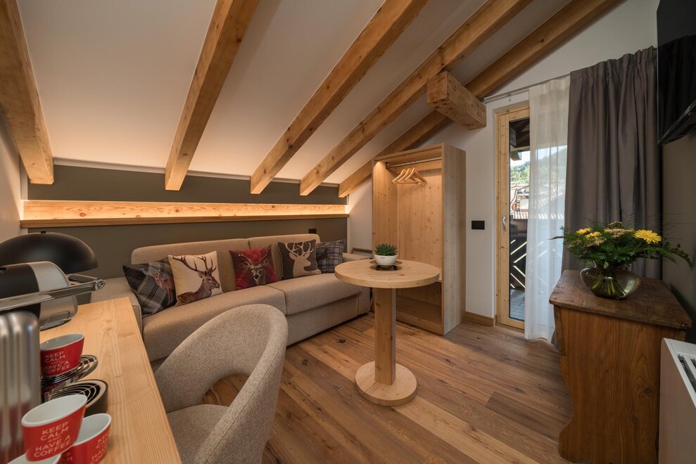 Ogni dettaglio è pensato per trasmettere armonia e comfort, in uno spazio che invita a rallentare e ritrovare sé stessi.Le Mini Green Suite sono disponibili al primo piano e ai piani superiori, ideali per chi cerca una pausa di serenità tra le montagne del Trentino, avvolto dal profumo del legno e da un’atmosfera di calda accoglienza.