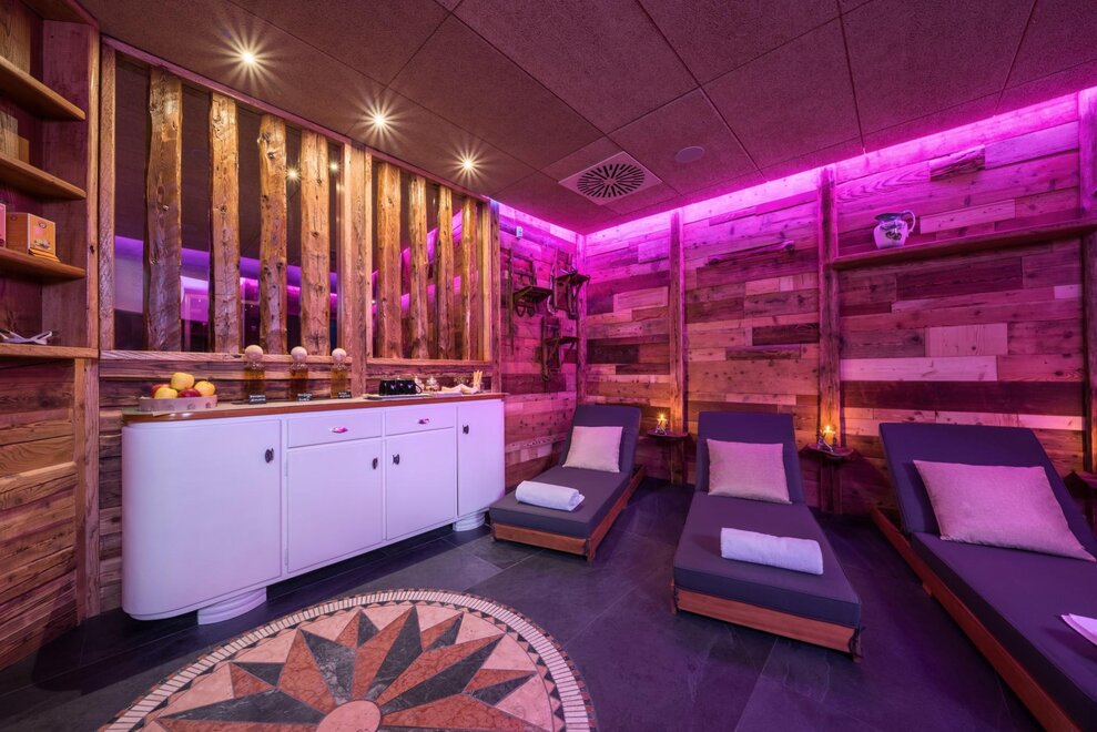 Rilassati nella nostra area wellness, completi di bagno turco, idromassaggio e sauna dopo una giornata di divertimento all'aria aperta. Le nostre camere doppie e singole sono dotate di comfort moderni e offrono una vista mozzafiato sulle vette circostanti.