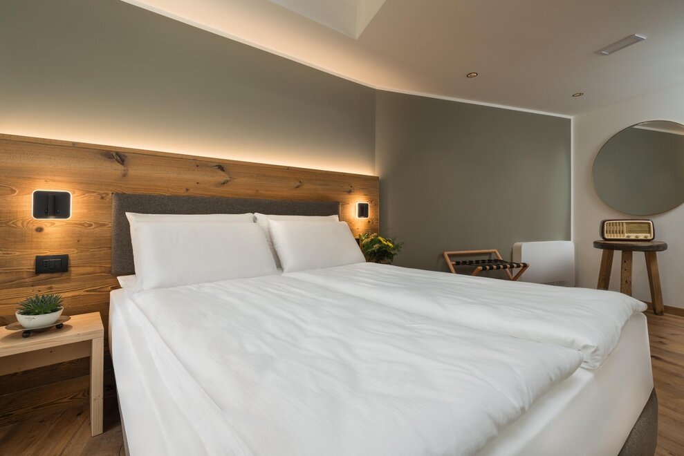 Per loro nascono le Mini Green, camere che uniscono il calore della tradizione alpina a un’eleganza naturale e contemporanea.Completamente rimodernate, accolgono l’ospite in ambienti ampi e luminosi, dove il legno di abete evaporato e il pavimento in rovere donano una sensazione di benessere autentico e di contatto con la natura.
