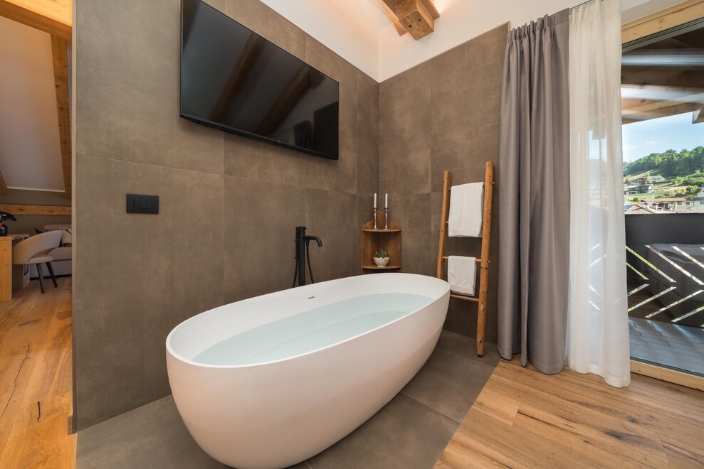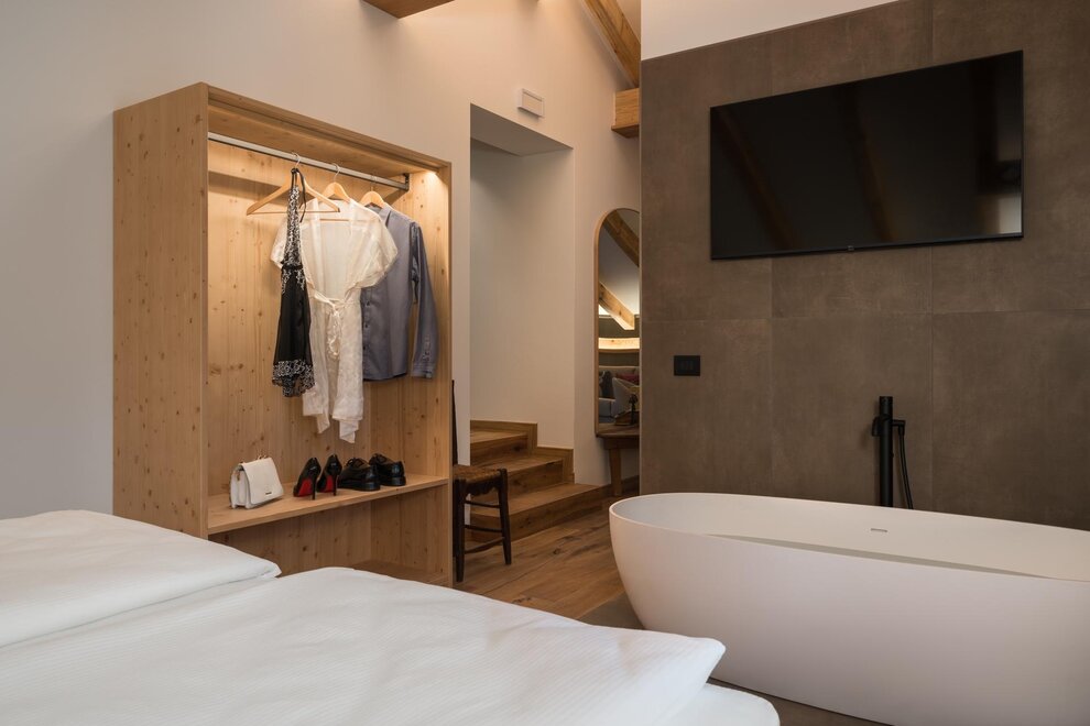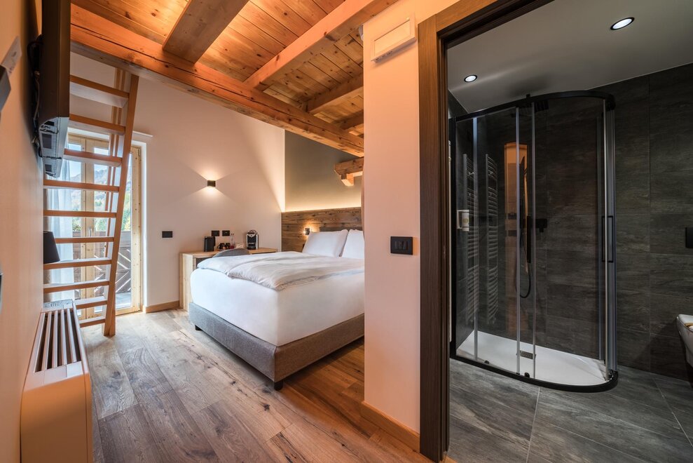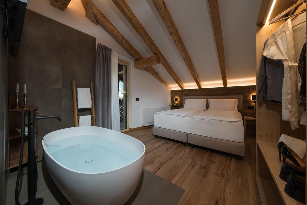 Se ami la comodità e vuoi dormire in una camere spaziosa ed elegante, la Junior Suite Genzianella è quello che fa per te.