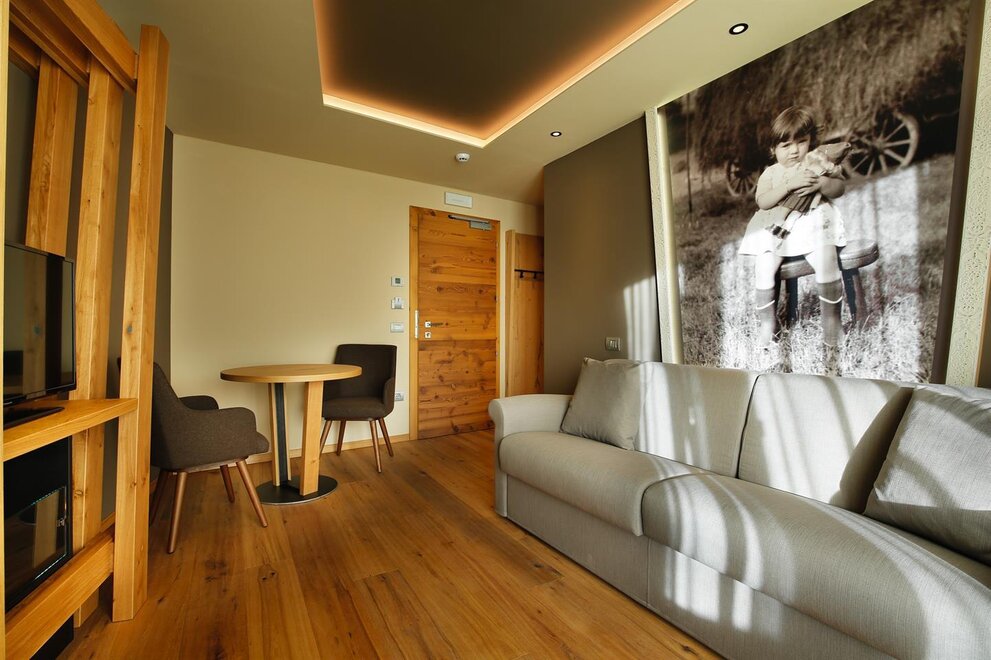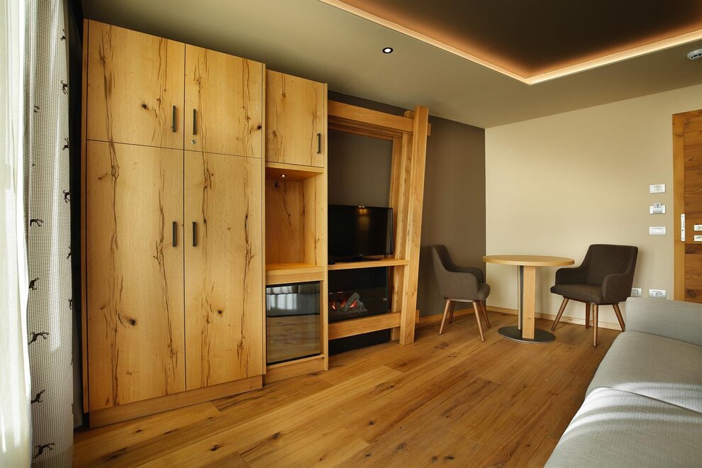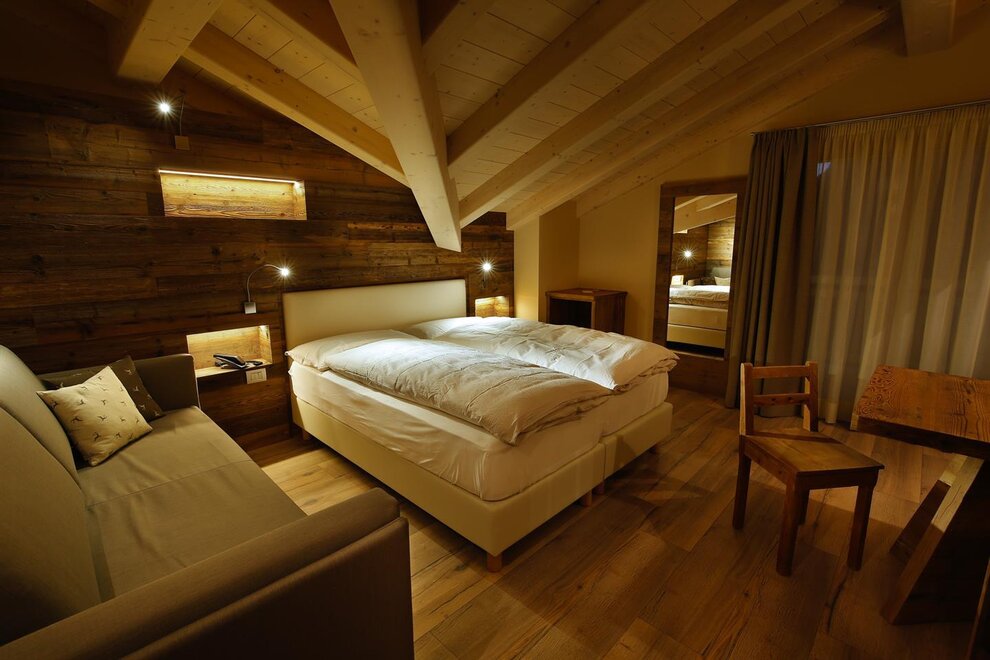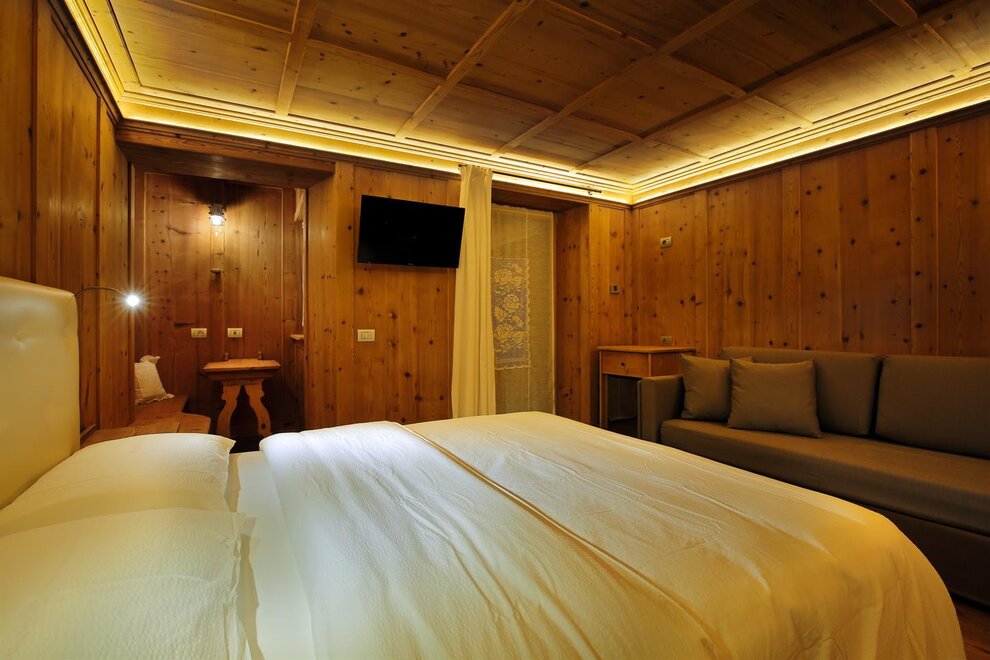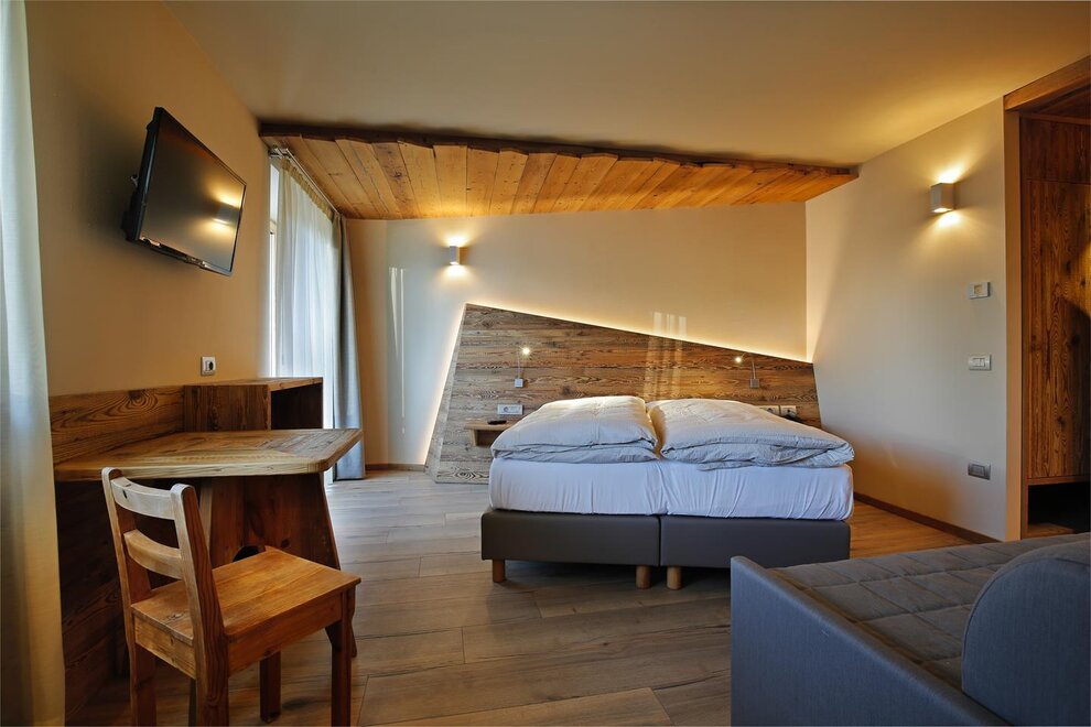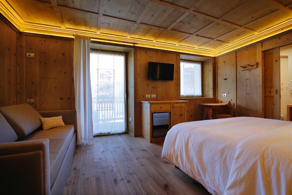 La nostra Suite è l’ideale per chi vuole trascorrere dei momenti di assoluto relax in totale riservatezza e tranquillità. Camera dotata di 2 ampi locali, arredata con cura nei particolari si compone di soggiorno con caminetto emozionale e camera padronale. Quest’ultima con un meraviglioso poggiolo di fronte alle Pale di San Martino si caratterizza per i caldi colori donati dall’ arredamento in rovere e da un materasso Memory soft che vi permetterà meravigliosi sogni.