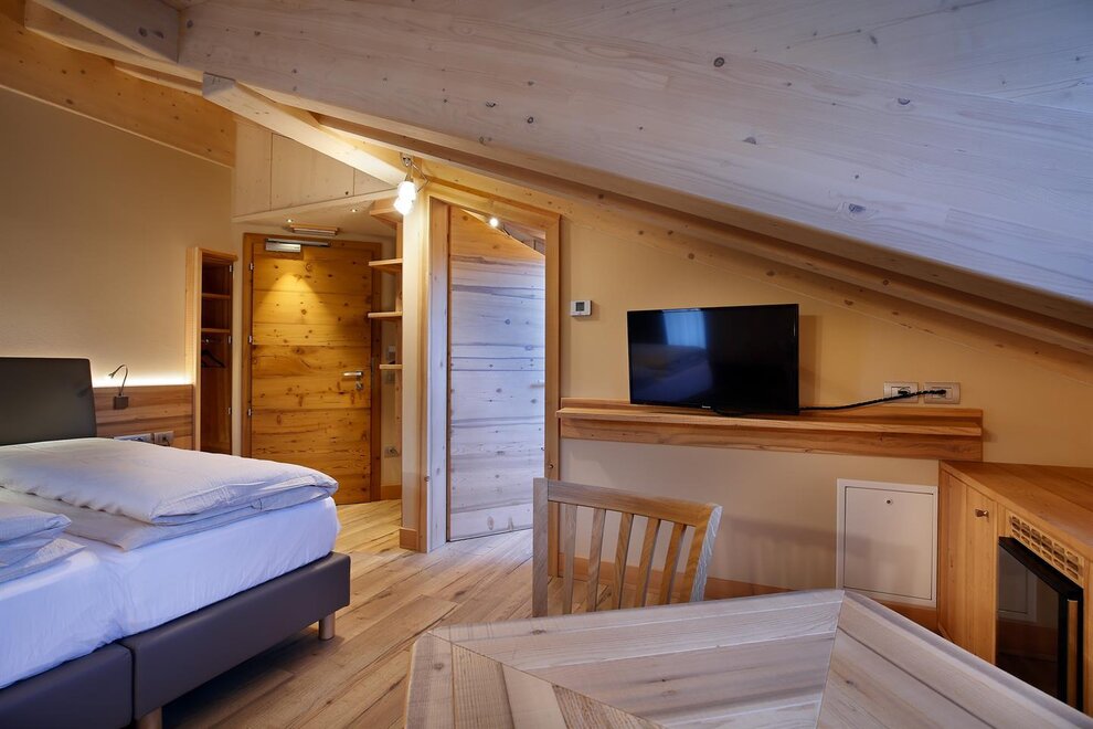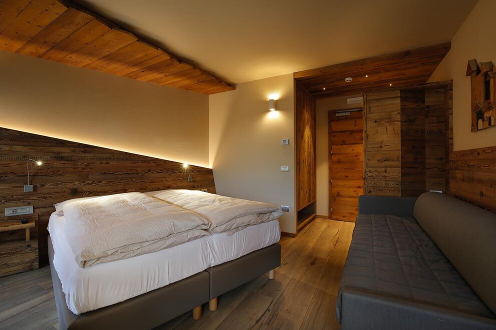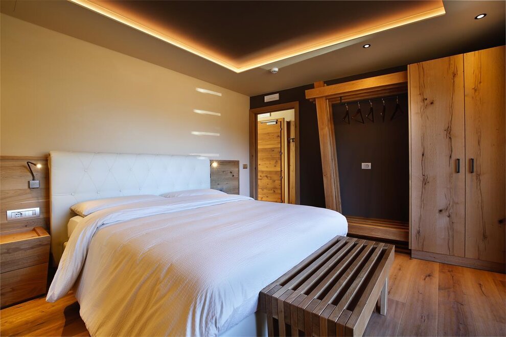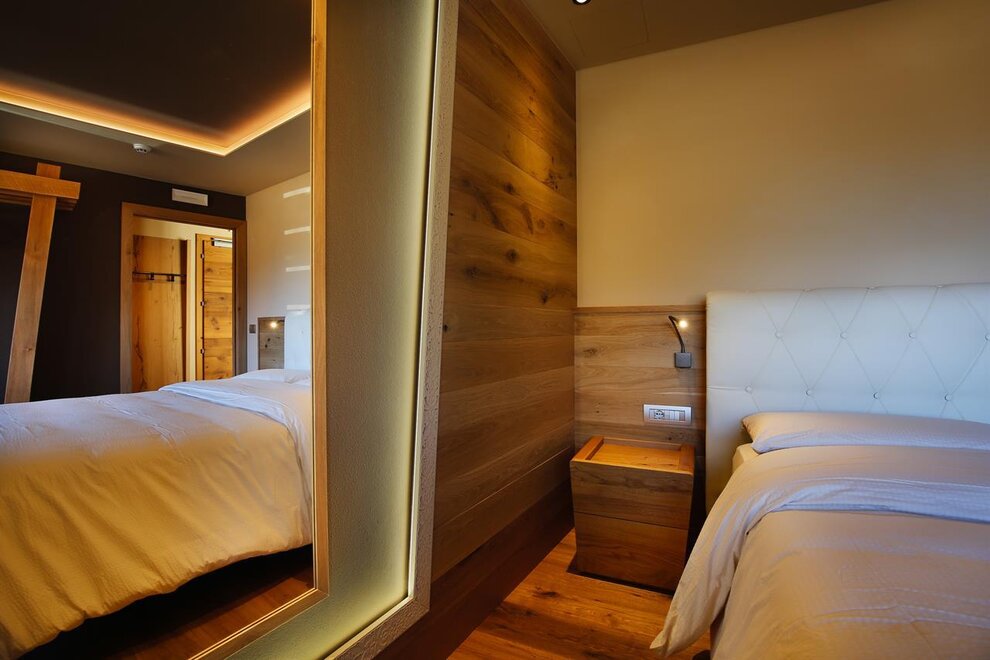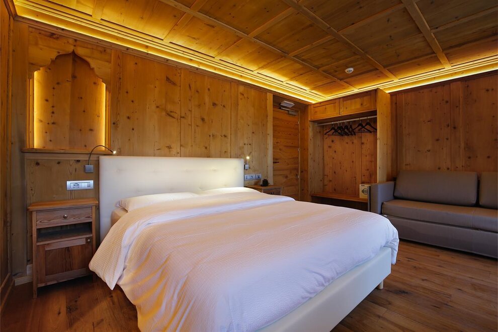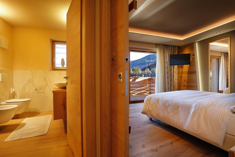 La nostra Suite è l’ideale per chi vuole trascorrere dei momenti di assoluto relax in totale riservatezza e tranquillità. Camera dotata di 2 ampi locali, arredata con cura nei particolari si compone di soggiorno con caminetto emozionale e camera padronale. Quest’ultima con un meraviglioso poggiolo di fronte alle Pale di San Martino si caratterizza per i caldi colori donati dall’ arredamento in rovere e da un materasso Memory soft che vi permetterà meravigliosi sogni.