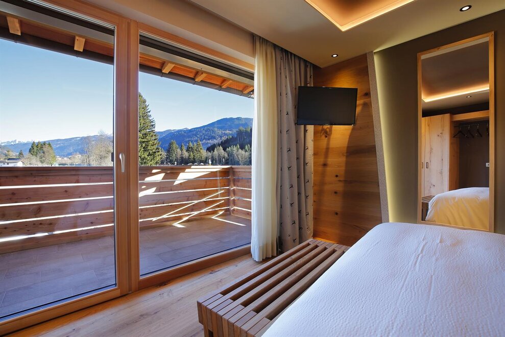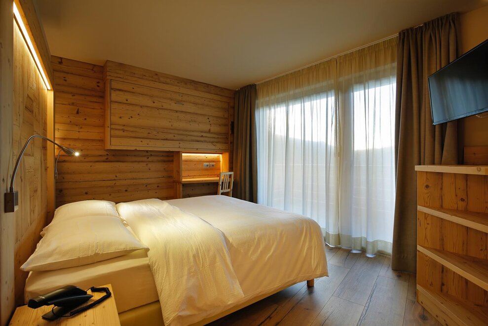 Camera realizzata in legno di seconda patina, caratterizzata da un’atmosfera accogliente, toni e colori caldi per un soggiorno all’insegna della massima tranquillità. Ampio poggiolo per godersi la meravigliosa vista.