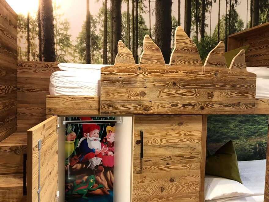 La junior suite è una camera a tema (Cappuccetto Rosso, Bambi, Heidy, Bosco Incantato, Carica dei 101) composto da due zone divise tra zona adulti e zona bimbi, con 4/5 posti letto. Dotata di 2 TV, telefono, asciugacapelli, cassaforte e balcone. Alcune di esse hanno 1 bagno + 1 bagno di servizio (lavabo + WC). Altre hanno le due zone divise da una porta scorrevole.