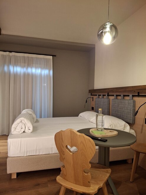 La nostra piccola struttura offre 9 curate camere da letto appena ristrutturate, ideali per un tranquillo soggiorno in montagna, lontano dallo stress e dai rumori delle località turistiche più frequentate. Mettiamo a disposizione dei nostri cari Ospiti camere confortevoli e accoglienti, con diverse tipologie, dimensioni e tutte le comodità a prezzi davvero vantaggiosi per soddisfare tutti i gusti durante le vostre vacanze in montagna in Trentino. La stanza è dotata di bagno privato finestrato con doccia a pioggia, asciugacapelli e set cortesia, la camera è divisa in due ambienti separati entrambi dotati di smart TV, Wifi gratuita, letto con materasso a molle insacchettate, spot di lettura e tavolino