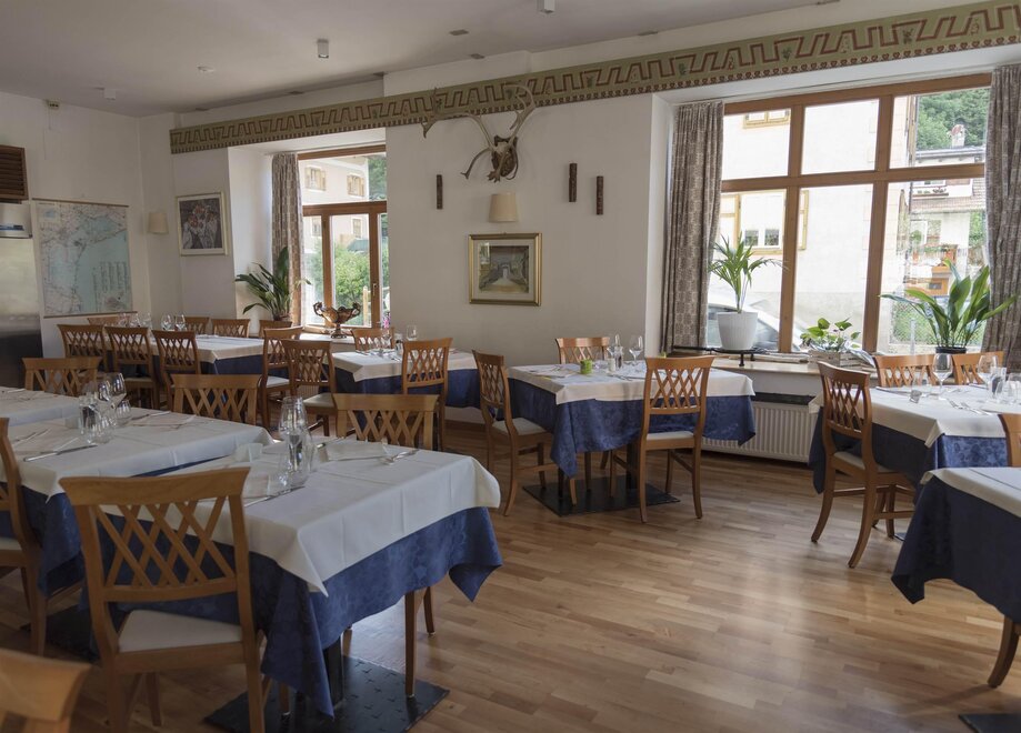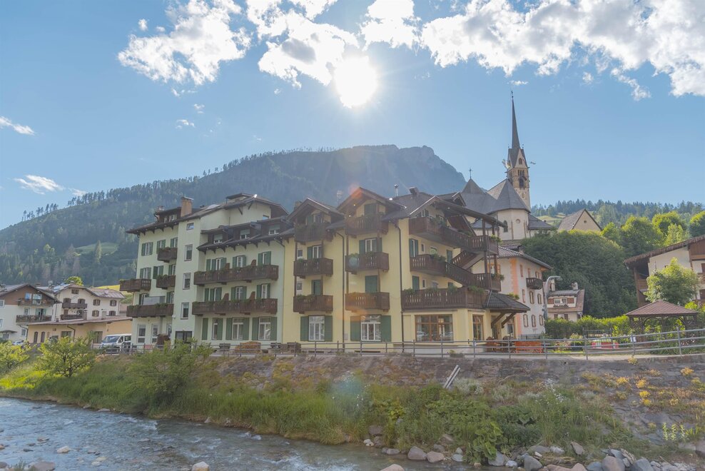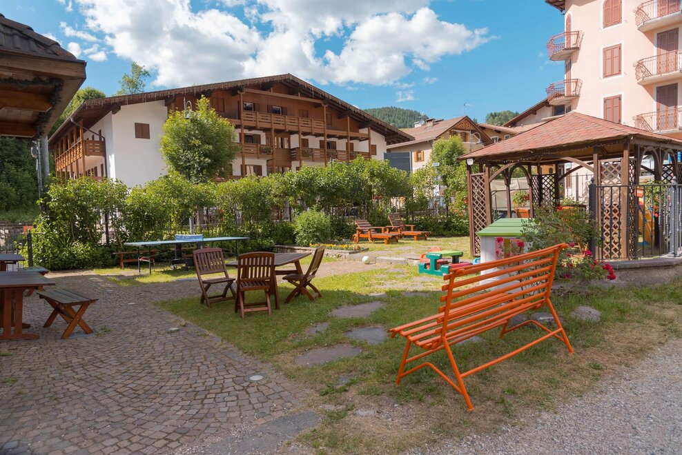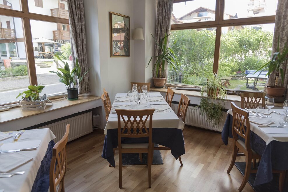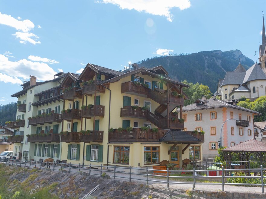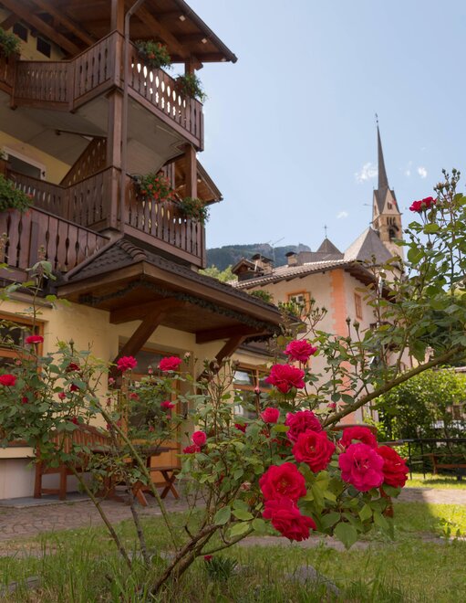 Proveniendo da Ora l'hotel si trova in centro paese, a destra, sulla strada principale.