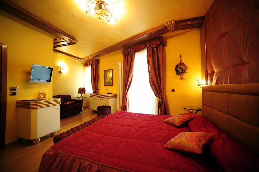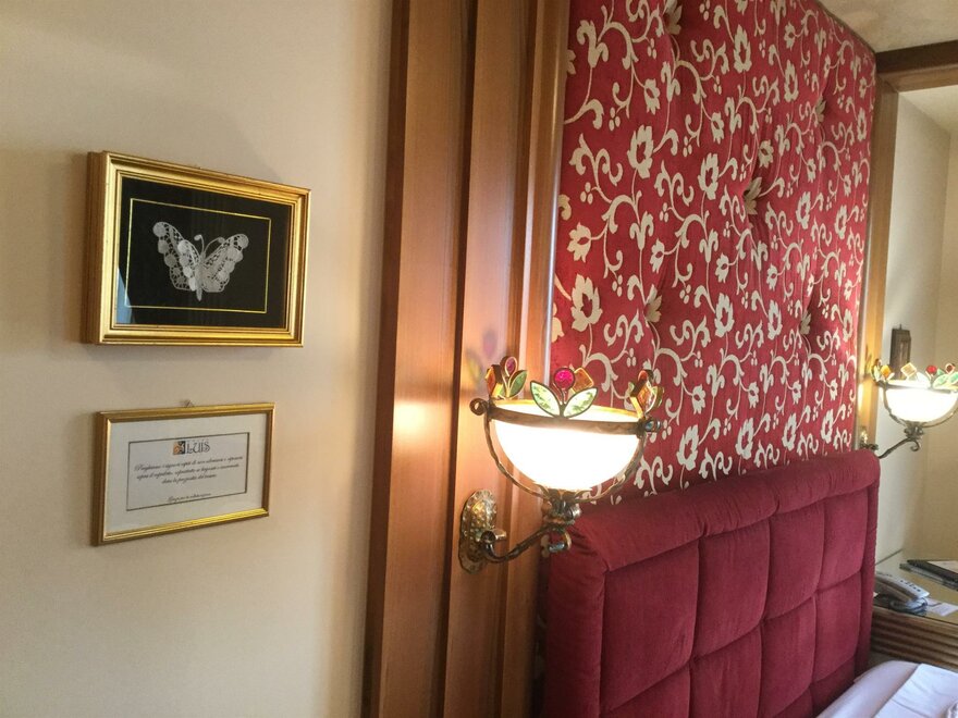 La Stanza Superior è una camera ampia di circa 24 mq pensata per chi cerca, oltre alla qualità, anche la comodità. Doppia o matrimoniale, alcune con pavimento in moquette di lana scozzese anallergica rossa o blu, altre in legno. Due delle nostre Superior sono dotate di un’ampio terrazzino di 15 mq, dove potrete ammirare in tramonto, bere un drink o semplicemente chiacchierare con i vostri amici passando una piacevole serata in compagnia. L’arredamento è in stile moderno in legno d’acero, decorato con dettagli dorati che impreziosiscono tessuti e tendaggi. Le nostre camere sono fornite di: TV satellitare da 28”; WiFi libero e gratuito in tutto l’albergo – troverete la password nel vostro kit di benvenuto; Mini bar; Aria condizionata (su richiesta, solo alcune stanze); Asciugacapelli; Cassaforte.