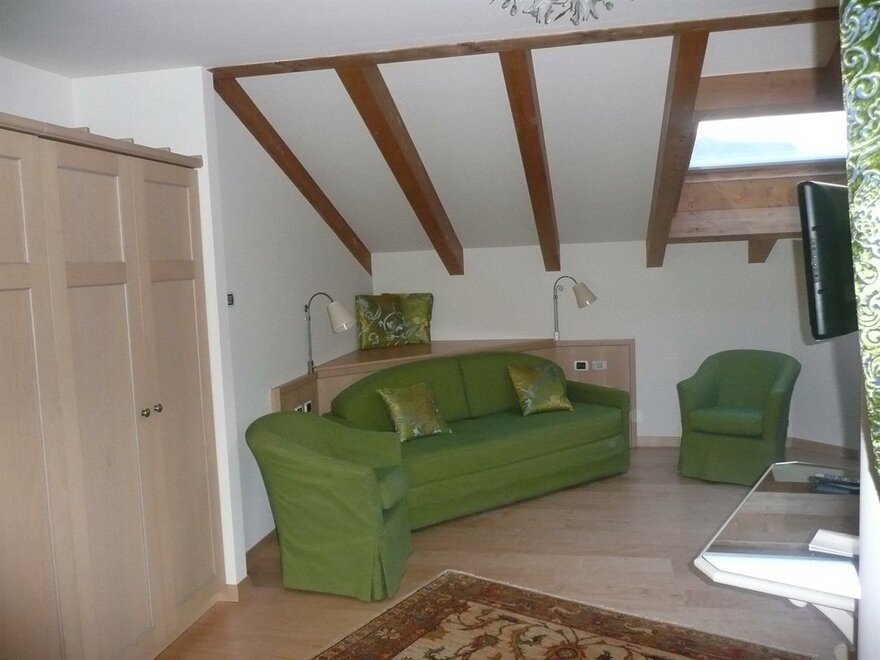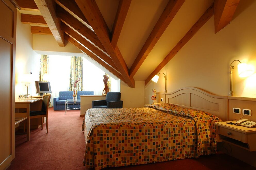 Stanza composta da un letto matrimoniale ( o su richiesta due separati) con aggiunto un letto tipo sommier. Metratura di 35mq circa con salottino e alcune con balconcino (una anche con una terrazza molto grande). Trattasi di stanze molto luminose ed accoglienti. Il pavimento è in legno di betulla. E' dotata di cabina armadio, mobile scrittoio, Tv da 28 pollici, Tv Sat, frigo bar, cassaforte, telefono, connessione Wi-Fi gratuita. Il bagno è dotato di box doccia , phon, specchio ingranditore