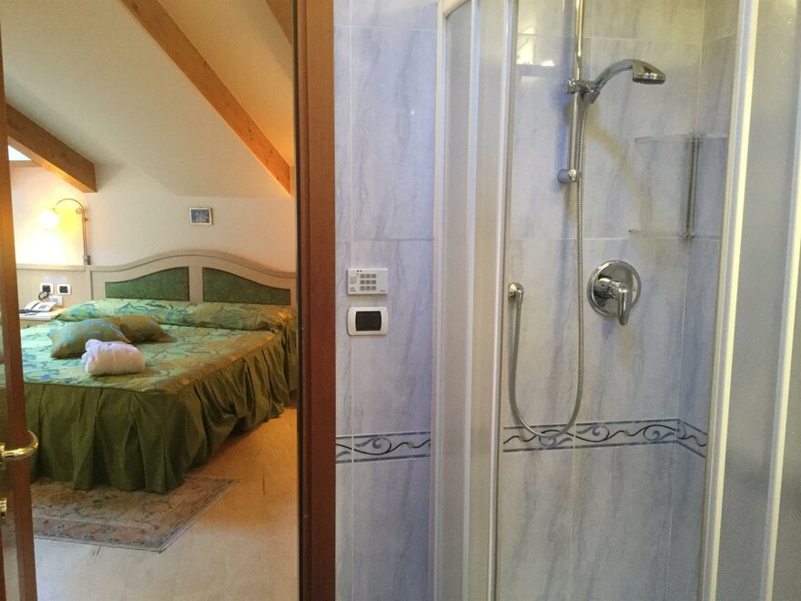 La stanza Standard è una camera doppia o matrimoniale di circa 22 mq. Alcune hanno il pavimento in moquette di lana scozzese anallergica, altre invece hanno il pavimento in legno. Alcune stanze sono dotate di balconcino, dove potrete ammirare il nostro bellissimo panorama. L’arredamento è in legno d’acero, molto ricercato, moderno ma classico. I tessuti e i tendaggi sono di ottima qualità decorati con bellissimi ricami. Ognuna presenta delle decorazioni in tema all’arredamento e ai tessuti. La stanza da bagno è piuttosto generosa con grandi superfici specchiate, comoda anche per i portatori di handicap. Ogni camera è dotata di scrittoio. Comodamente raggiungibili in ascensore, c’è la possibilità di richedere il servizio di valigeria ai piani. Le nostre camere sono fornite di: TV satellitare da 28”; WiFi libero e gratuito in tutto l’albergo – troverete la password nel vostro kit di benvenuto; Mini bar; Aria condizionata (su richiesta, solo alcune stanze); Asciu