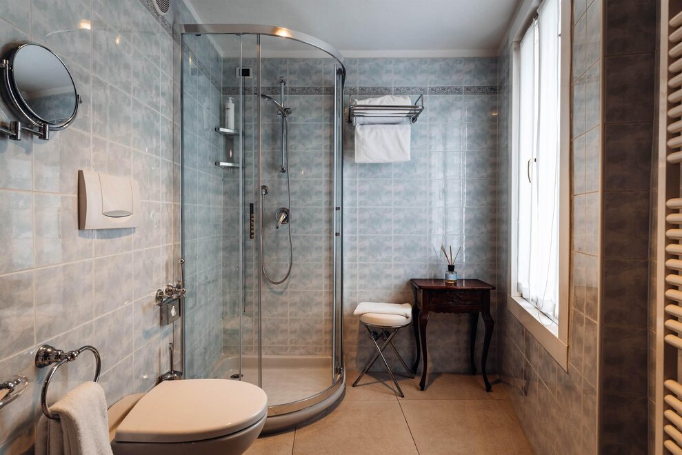 La Junior Suite Garden, in stile classico-moderno, si trova all’ultimo, nuovissimo piano dell’omonima ala. Ricercate carte da parati e complementi d’arredo nei toni diffusi del grigio creano un’atmosfera sofisticata, raccolta e distensiva.