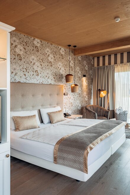Sono la soluzione ideale per chi cerca i massimi livelli di arredo e di comfort e un equilibrio armonico fra lusso e natura. Queste camere sono dotate di balconcini privati con viste mozzafiato sul nostro panorama alpino.