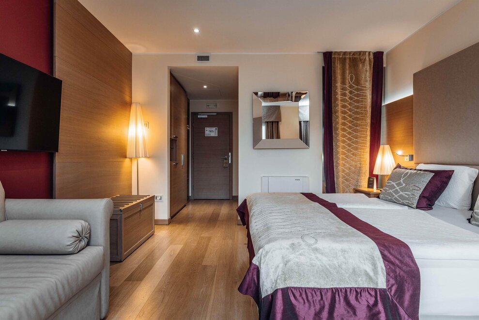 Le stanze Belvedere vi garantiranno un soggiorno di pace e relax: sono tutte insonorizzate e dotate di persiane oscuranti automatizzate. Inoltre, le camere hanno un comodo accesso all’area benessere dell'hotel, disponibile alla clientela su richiesta.