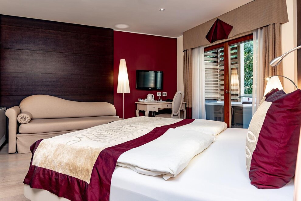 Nell’area Belvedere le camere sono spaziose e confortevoli, arredate con uno stile moderno ed elegante, ma in armonia con il gusto classico di Villa Madruzzo. Questa tipologia di camera è dotata di ampie e luminose finestre che conferiscono agli spazi respiro e calore. Tutte le Belvedere hanno un balconcino privato che si affaccia sul giardino o sul panorama collinare.