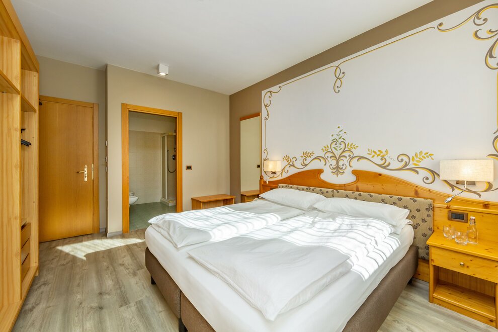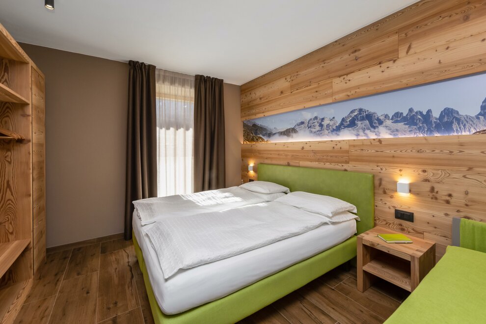 17 mq – per 2 personeCamera versatile con balcone, adatta a coppie. Con panorama sulle Dolomiti del Brenta. NON FUMATORI.