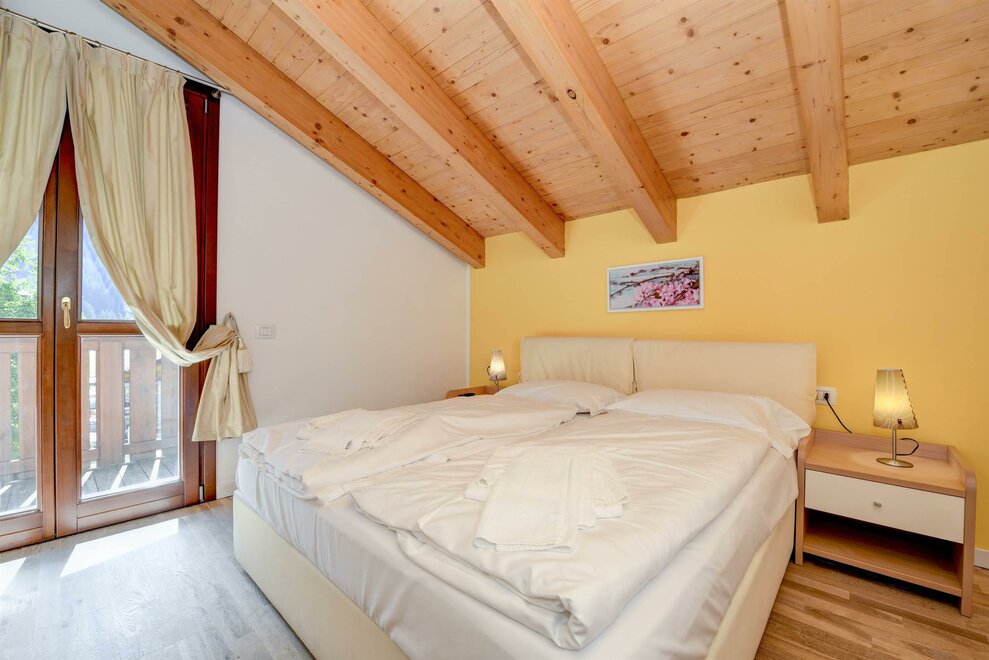 Appartamento al primo piano o secondo piano mansardato servito da ascensore. Soggiorno con angolo cottura, divano letto, camera matrimoniale, camera con due letti, bagno e balconi.